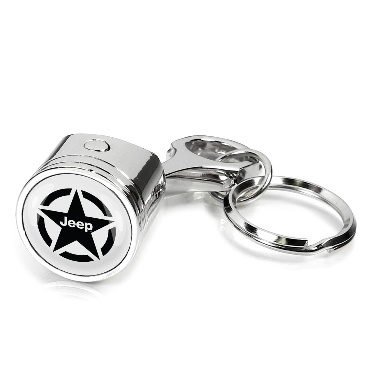 - Jeep Willys Star Logo In White Chrome Finish Engine Piston And Rod Metal Key Chain