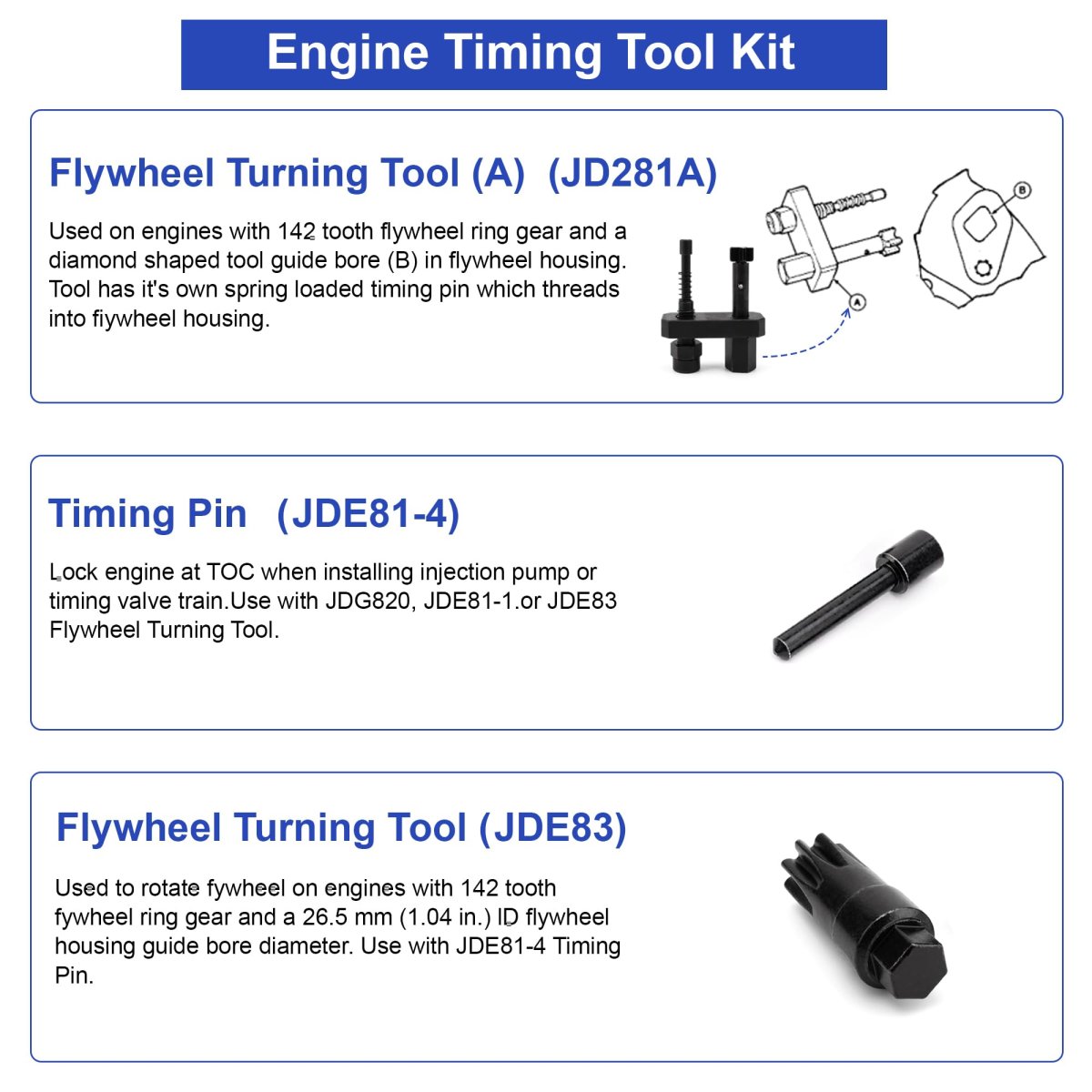 - Jetuplusllc Engine Timing Tool Kit Alt Jt07223a Jde83 Jde81-1 Jd281a For John Deere 3179 4239 6359 4276 6414 Agricultural