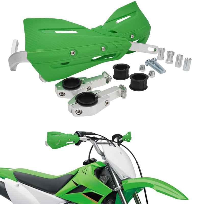 COMPATIBLE MODELS - Motorcycle handguards is universal suitable for 7/8 "22mm and 1 1/8" 28mm handlebar motorcycles, such as yz250f, crf150f, crf450r, kx250f, crf250l, klr650, ltz400, ttr125, drz400sm, 400ex, drz400 etc.. PREMIUM MATERIAL - The baffle part of handguards is made of PP plastic, which is light and durable, with high hardness, and can prevent the sand, gravel, rain, etc. hit during driving. The connecting piece and bracket of hand guards are made of high-strength aluminum alloy, which ensures the stability and prevents hand guards from shaking or falling off when driving.. SAFE AND WARM - Under bad driving conditions, it is inevitable that there will be sediment, gravel and rain. Hand guards can effectively prevent hands from being injured. In addition, hand guards can also block some cold wind and effectively keep your hands warm riding in cold weather.. PROTECT COMPONENTS - When riding in the wild, handguards can protect the lever, cable and other important parts from being scratched and damaged by sharp tools such as branches. Hand guards can also play a buffer role when the motorcycle falls to the ground to prevent some important parts from directly hitting the ground, causing greater losses.. EASY TO INSTALL - The accessories of hand guards are complete. Just assemble the accessories and install them on the handlebars. In the whole process, only some ordinary maintenance tools are needed, and no additional changes are required..
