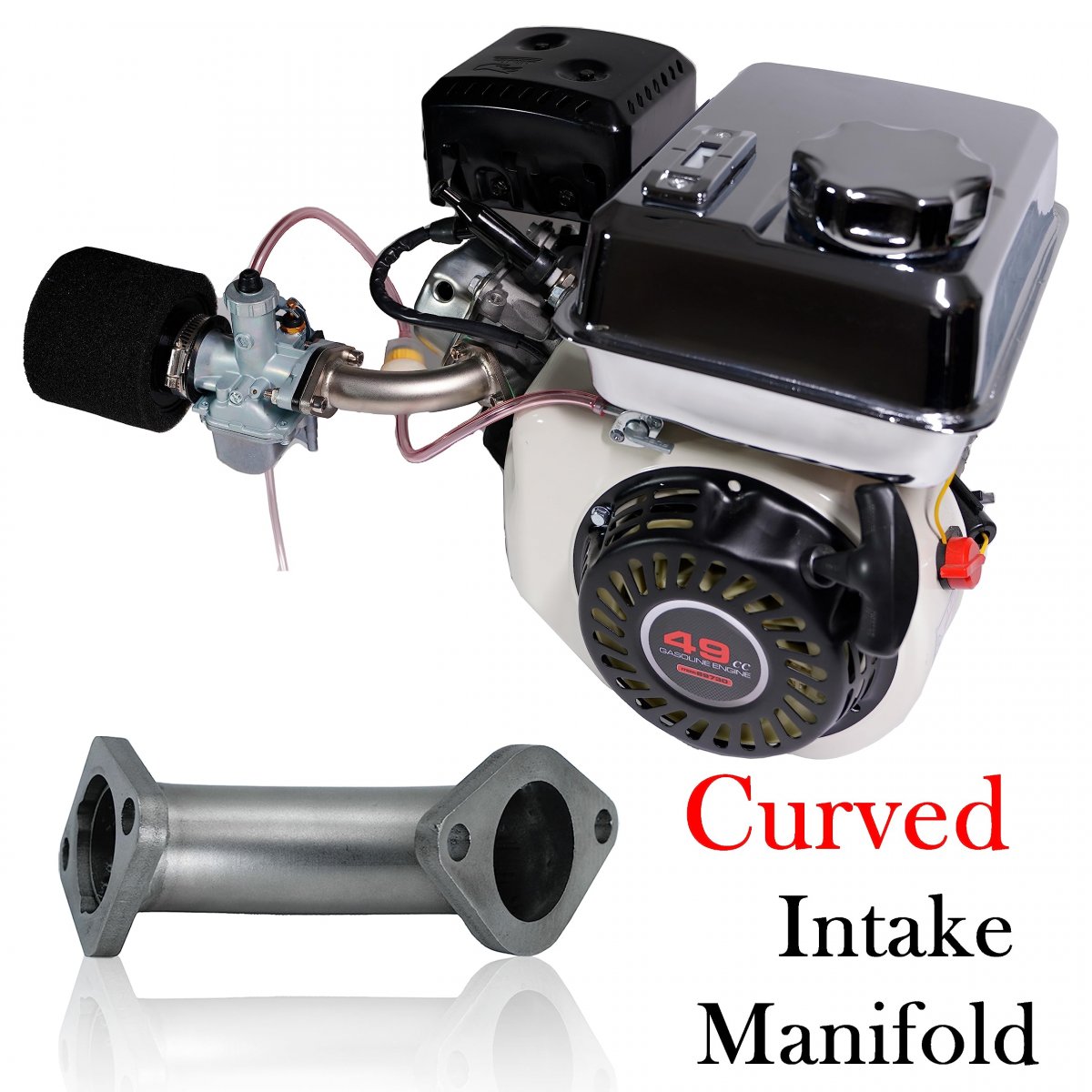JMCHstore VM22 carb w/ Curved manifold kit for Coleman CT200U CT200U-EX BT200X Mini Bike; Baja MB165 MB200 Doodlebug Mini Bike; TrailMaster MB200-2 Minibike, Realtree RT200 196cc Mini Bike.. For Predator 212CC Hemi non Hemi GHOST 224CC MAX Engine; Tillotson 196/212/225; Honda GX160 GX200 Engine; 196 Clones Chinese Motor.. Next Level Performance. Thanks to Performance VM22 Carb & High Flow Air Filter. Not only the intake air become smoother but also speed up. W/ massive amount of intake mixture , you should experience an increased top speed of about 10 - 15 mph w/ correct tuning.. Solid curved 26mm intake manifold. The length and shape of this manifold is great for increased low to mid range power. Great setup for the 196cc/212cc looking for more power!. Manifold made of Stainless Steel & Slide shape allows for Tire Clearance in go kart applications and more Leg Room for mini bikes.. Full set of Spare Replacement Main jet from #88 - #125. Allows you to reach the optimal fuel-air mixture at varying altitudes, ensuring maximum engine performance and fuel efficience at all times.. Package included: 1 x Performance Carburetor, 1 x Curved Manifold ,1 x Main jet Kit,1 x High flow Air filter; 1 x Fuel filter; 1 x Intallation Kit..Other fine products