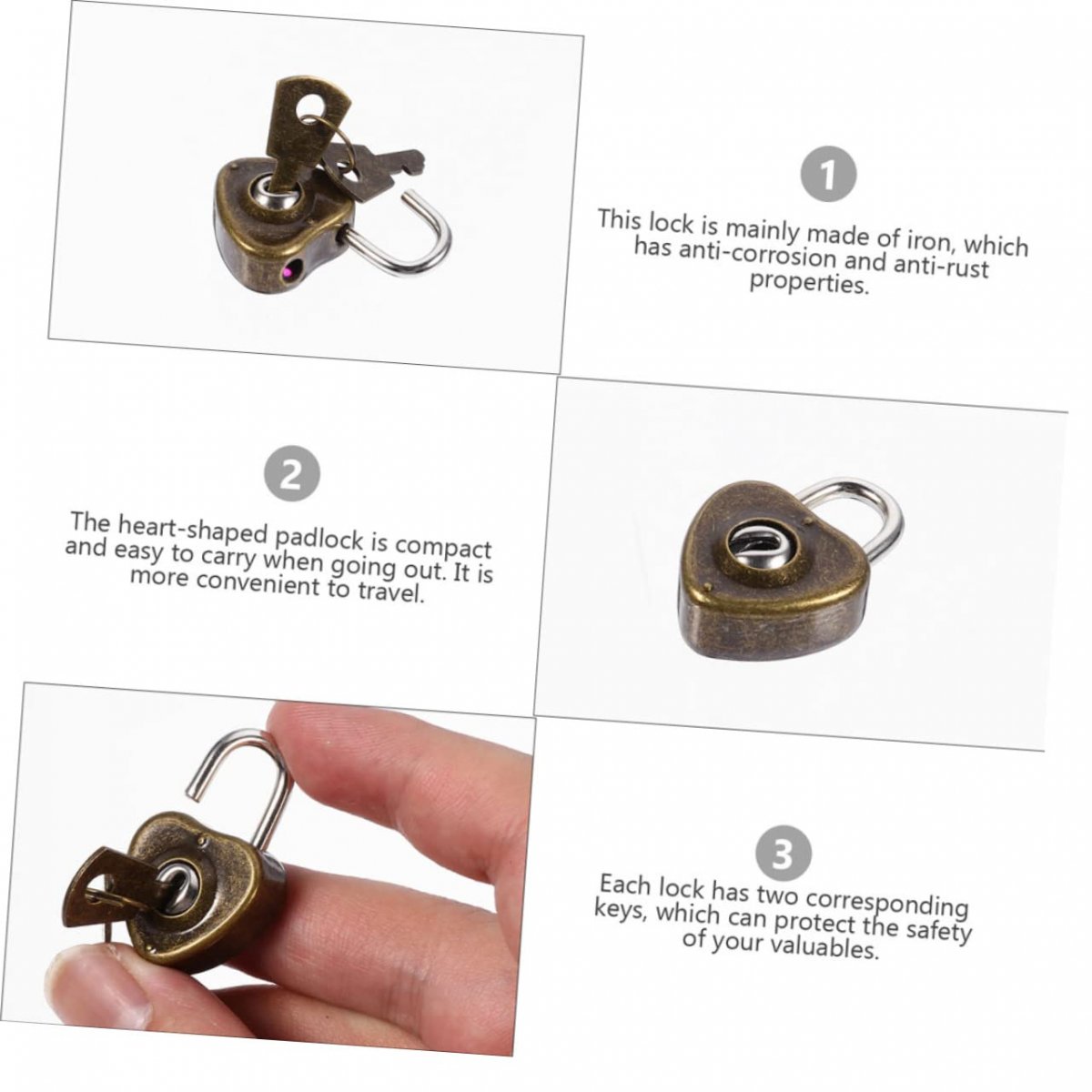 Hanging luggage lock: a classic heart shape that looks very textured and can be used as a handbag decoration.. Heart archaize padlocks: exquisite details and good workmanship make it safer and more durable, and will serve you well.. Heart lock with key: suitable for tourist attractions, such as wishing tree, wishing bridge, etc., or diaries and jewelry boxes.. Antique padlock: can keep your valuables safe and also decorate your storage boxes, suitcases, drawers and more.. Metal cabinets: can be used in various occasions such as drawers, suitcases, journals and cabinets..Other fine products