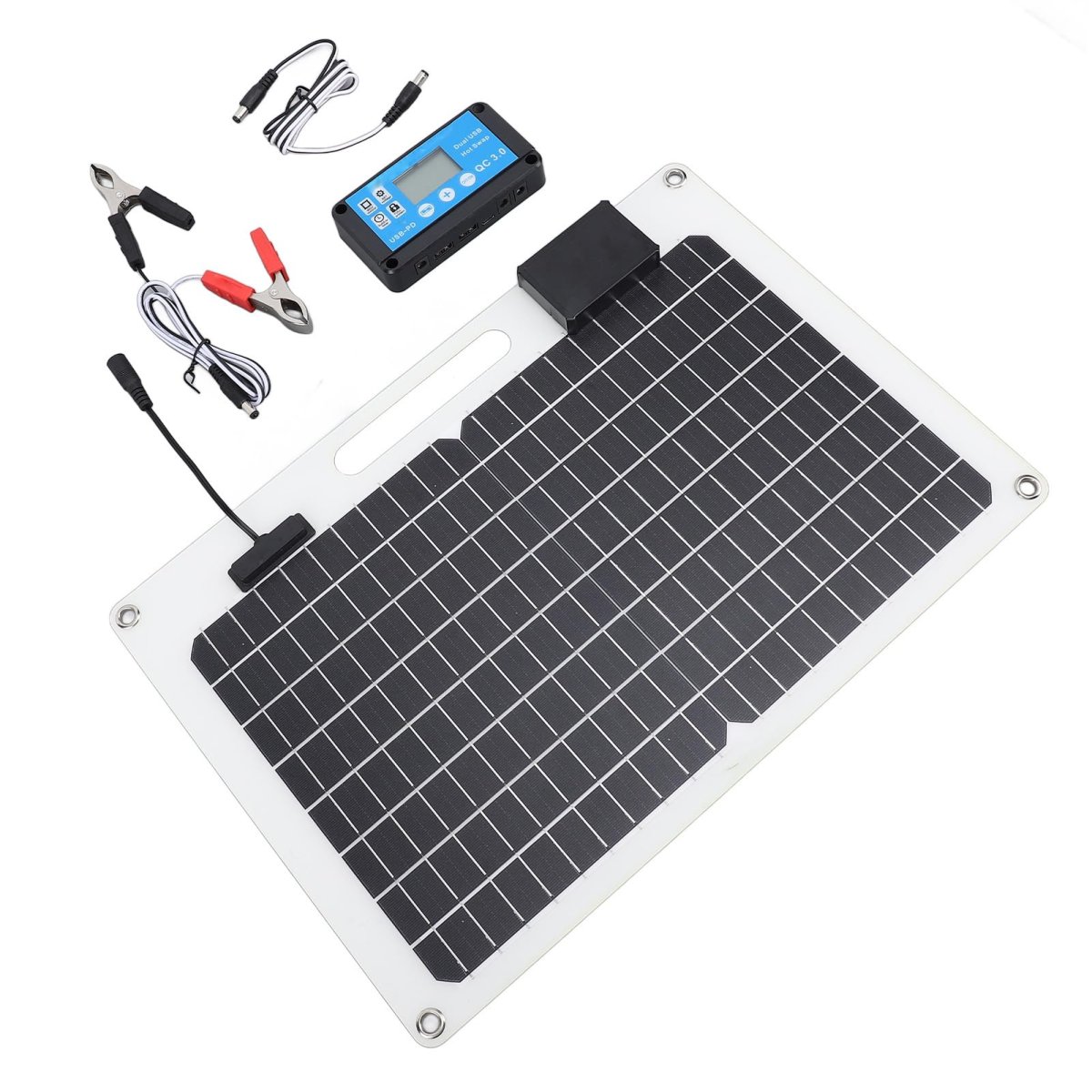 [HIGHLY EFFICIENT CHARGING] Adopts monocrystalline silicon technology to provide 100W output power for efficient and convenient battery charging.. [SAFE BATTERY MANAGEMENT] Equipped with a 100A controller for stable and reliable operation, ensuring battery safety and longevity.. [VERSATILE USAGE] for various environments including RVs, boats, rooftops, security cameras and more, providing convenient solar charging solutions.. [COMPREHENSIVE PROTECTION] Protects against overcharging, over-voltage, discharging, short circuit and reverse polarity to extend battery life.. [DOUBLE USB PORTS] Features two USB ports to charge multiple devices at the same time, improving work efficiency and ease of use..Other fine products