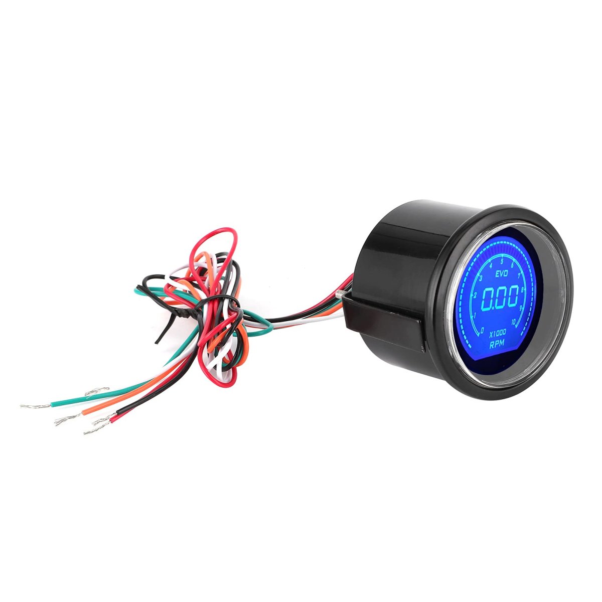 - Keenso 52mm Lcd Digital Tachometer Rpm Display Red Blue Light For Evo Series Universal 12v Car