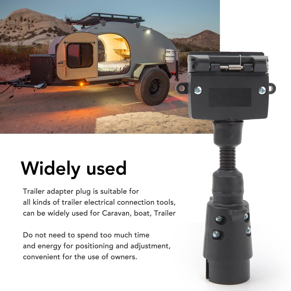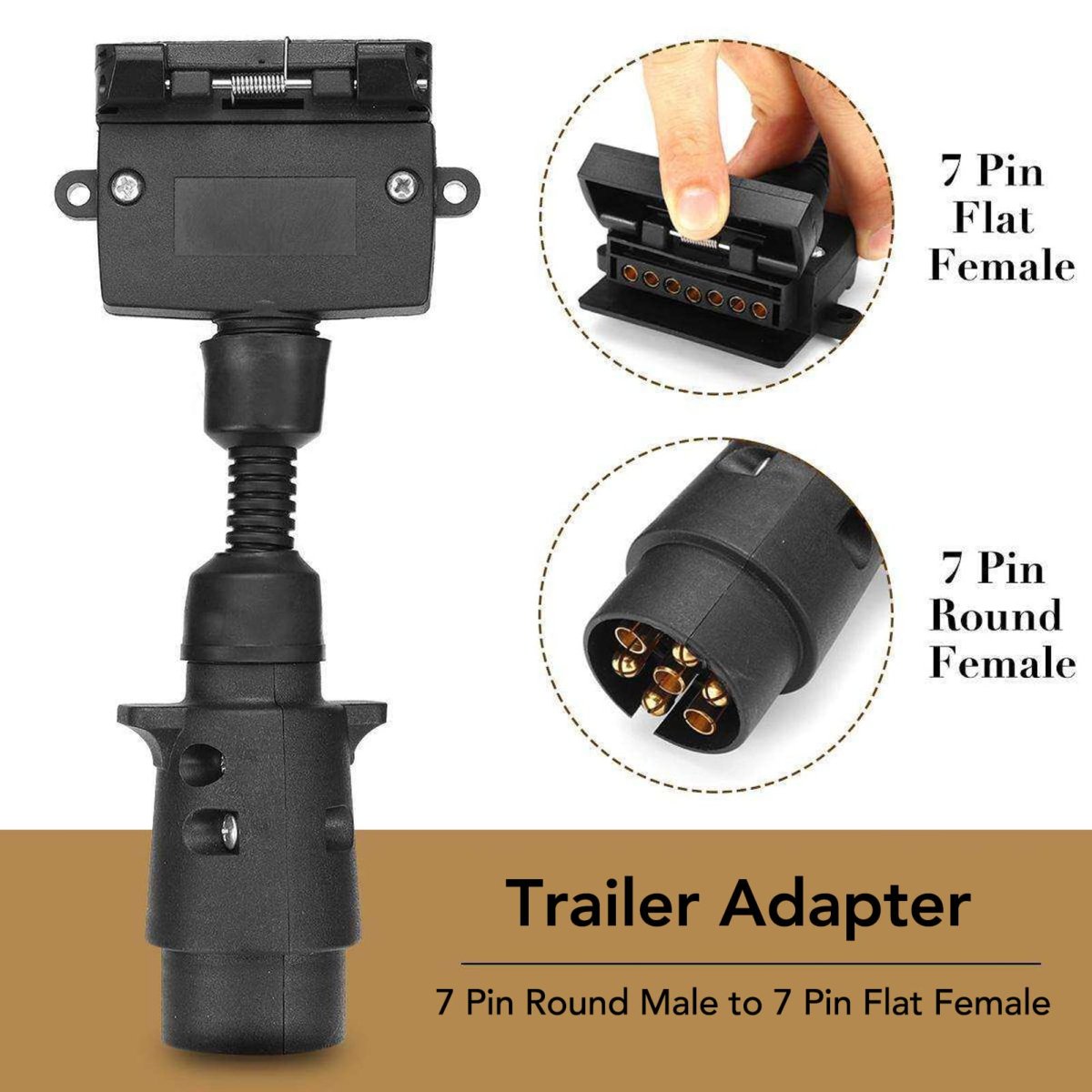 STABLE CONNECTION: When used with proper longitudinal control and support, our trailer adapter minimizes the likelihood of loosening due to shaking while driving. It delivers a stable connection for your vehicle.. FUNCTION: This adapter converts a 7-pin round male plug into a 7-pin female flat socket effortlessly. It ensures a connection between your trailer and the power supply.. WIDE APPLICATION: This trailer adapter plug is suitable for all kinds of trailer electrical connection tools. It can be widely utilized for , boats, and trailers, making it a versatile choice for your towing needs.. EASY TO USE: Our trailer adapter is easy to install and disassemble, saving users time and effort. It eliminates the need for complex adjustments, increasing convenience for the owner.. STURDY MATERIALS: Our trailer adapter plugs are made from premium materials, ensuring durability and high-pressure They are and maintain a secure connection even under harsh weather or road conditions..Other fine products