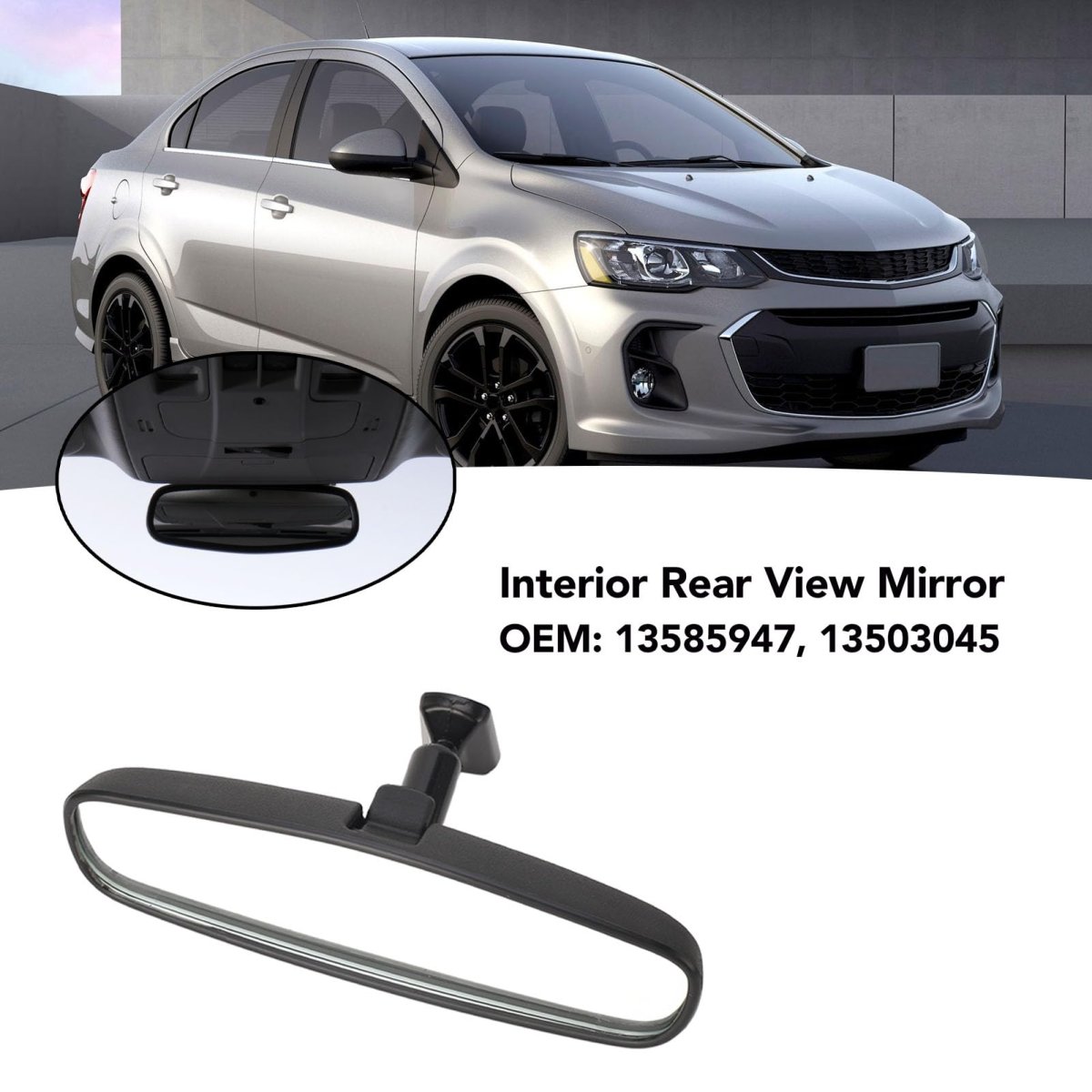 [Stylish Decoration] Add a touch of class to your car with this mirror, enhancing its aesthetics and making it more visually appealing.. [Easy Installation and Maintenance] The smooth surface is easy to clean, stable, and won't obstruct your view. directly replace your old mirror for easy setup.. [Enhanced Safety] Clear visibility and wide angle provide an intuitive view of the rear side, enhancing driving safety on the road.. [Compatible with Various Car Model] The interior rear view mirror fits vehicles such as verano, ats, Screw/Fastener, cruze, malibu, sonic, , volt, terrain. verify the part numbers 13585947, 13503045 for fitment.. [Durable and Reliable] Built to last, this mirror is dependable for long-term use, ensuring a stylish and safe driving experience for years to come..Other fine products