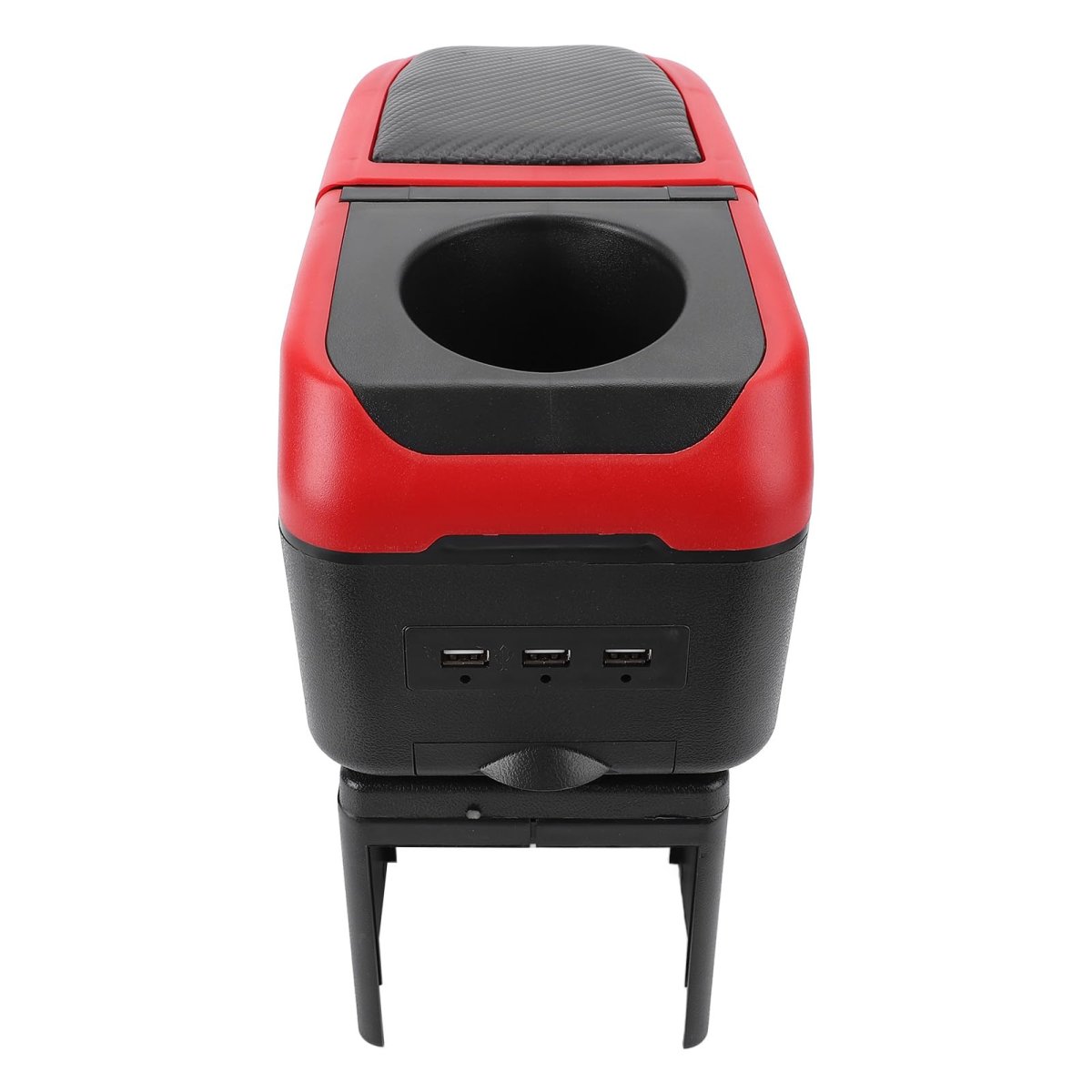 - Keenso Car Armrest Storage Box Universal Abs Material Double Layer With 6 Usb Charging Ports For Suv Truck Red