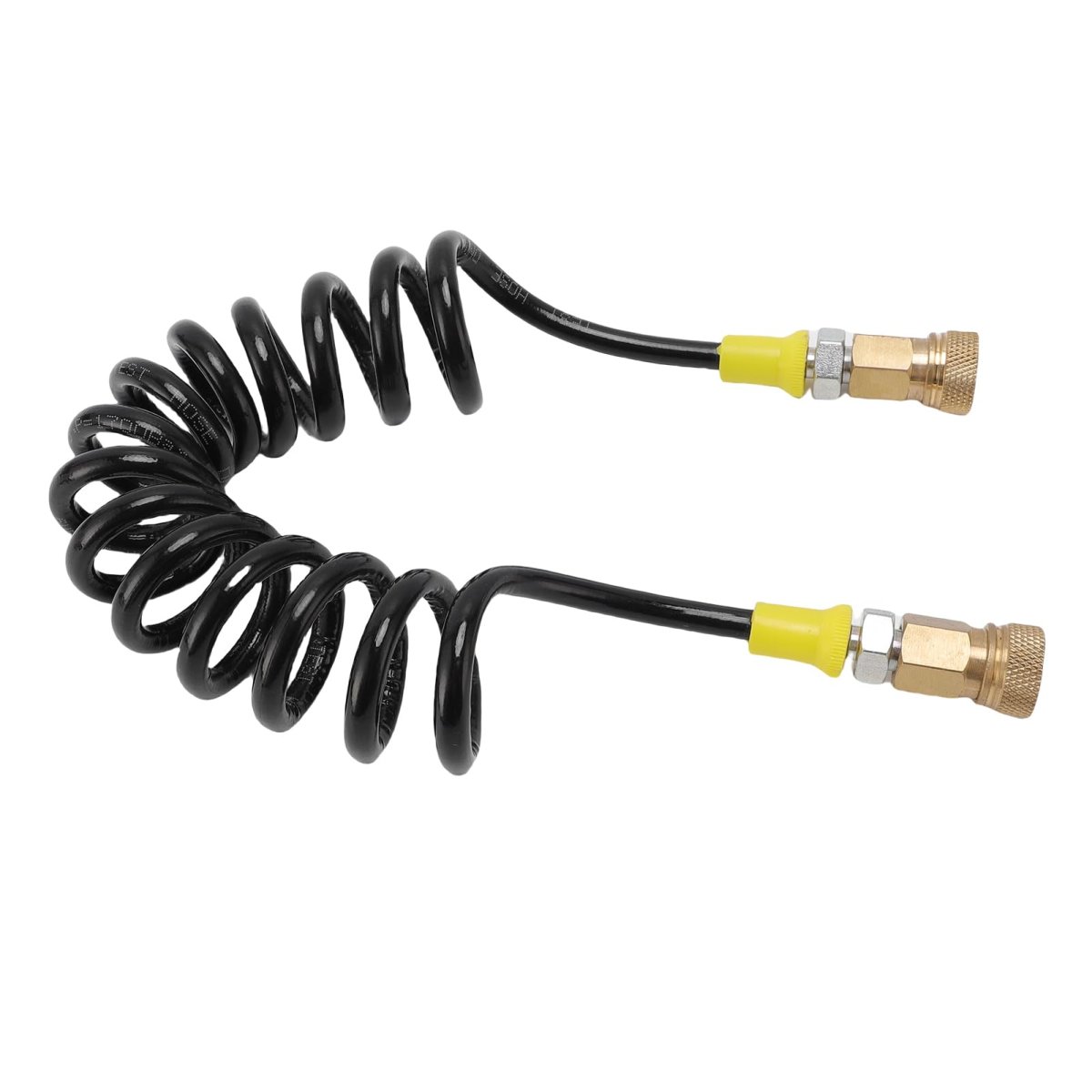 [HIGH PRESSURE PERFORMANCE] This heavy duty coil air hose is engineered to withstand extreme pressures up to 63MPa thanks to its premium brass and reinforced plastic construction. The industrial grade materials ensure reliable performance under demanding conditions while maintaining safety and durability for long term use in professional settings.. [FLEXIBLE SPRING DESIGN] Featuring an innovative spiral spring structure this air hose offers exceptional flexibility and stretchability without deformation. The advanced design allows repeated bending and twisting while retaining its original shape making it for tight spaces and frequent movement applications.. [DUAL FEMALE CONNECTORS] Equipped with two 8mm female connectors this hose provides universal compatibility with various air pumps and inflation devices. The standardized fittings ensure quick secure connections to different equipment types eliminating the need for multiple adapters in your toolkit.. [QUICK CONNECT SYSTEM] Our high pressure hose features a revolutionary quick connect mechanism that enables tool assembly and disconnection in seconds. This smart design drastically reduces setup time and improves workflow efficiency especially beneficial for professional users who value time saving solutions.. [VERSATILE APPLICATIONS] Designed for diverse inflation needs this multi functional coil hose works perfectly with electric air pumps and is ideal for inflating diving car tires motorcycles inflatable boats sports equipment and various pneumatic tools. Its wide compatibility makes it an essential accessory for both professional and personal use..