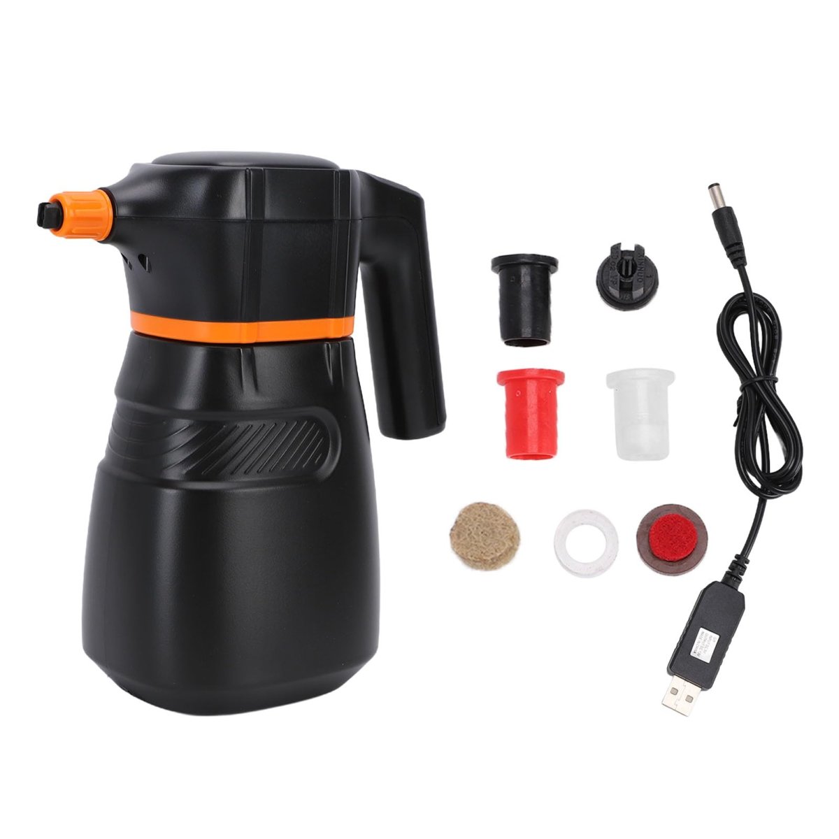 [Powerful Spray Capacity] Effectively generates fine foam spray, making it ideal for cleaning kitchens, bathrooms, vehicle exteriors, and interiors.. [Simple Operation] Beginners can quickly grasp how to use this electric foam sprayer, with fast charging capabilities for immediate cleaning.. [Large Capacity Design] With a 2-liter box, this rechargeable foam sprayer eliminates the need for frequent refills and is great for tackling extensive cleaning tasks.. [Lightweight and Portable] The spray bottle is easy to handle for extended cleaning sessions and can be conveniently stored in kitchens or car trunks without taking up much space.. [Durable Materials] Made of quality pp material and electronic components, this car wash foam sprayer can withstand water exposure during cleaning for long-lasting use..