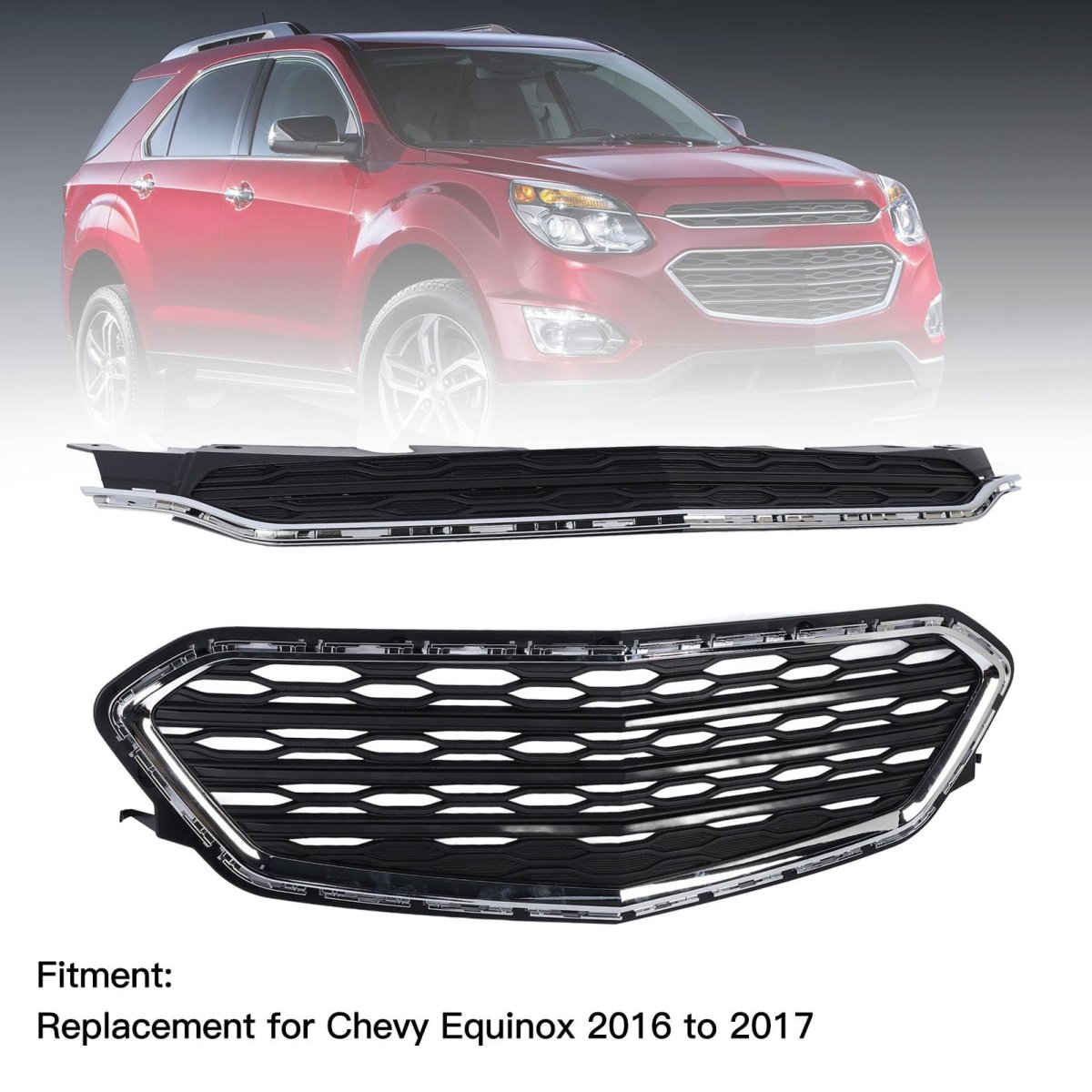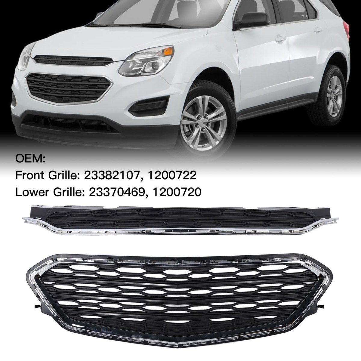 Durability: Constructed from ABS materials, our front bumper mesh grill set is built to withstand the harshest road conditions and weather elements. Compatibility: Our front bumper radiator mesh grill set features OE numbers 23382107 and 1200722 for the upper grill, and 23370469 and 1200720 for the lower grill. Compatibility and a seamless fit with your Equinox 2016-2017. Unmatched Style: This bmper mesh grill set sleek design adds a touch of elegance and uniqueness to your car's appearance, making it stand out from the crowd. Easy Installation: Specifically engineered as a direct replacement for the Equinox 2016-2017, our front bumper mesh grill set offers a perfect fit and hassle-free installation. Ideal Replacement: Designed to meet or exceed OEM standards, our front bumper mesh grill set is the perfect choice for replacing old or damaged grills on your original vehicle.Other fine products