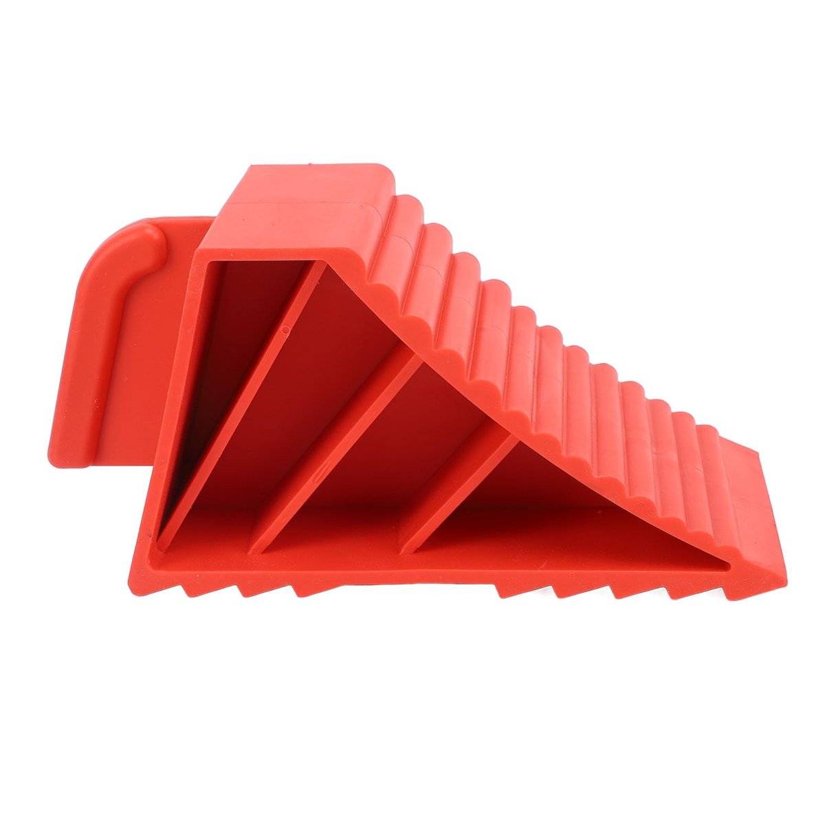 Enhanced Security: With a ribbed anti slip design on the back, these wheel chocks offer a strong grip on most surfaces, be it concrete, gravel, or ramps. They enhance the safety of your parked vehicle by keeping it in place, effectively preventing any movement.. High Visibility: With their vibrant red color, these tire chocks are easily visible, reducing the risk of accidental removal or tripping over them, making them convenient for both professional mechanics and everyday vehicle owners.. Versatile Applications: With a size of 210x100x86mm, ideal for parking and immobilizing various vehicles, such as cars, trucks, SUVs, caravans, and trailers. The chocks are suitable for driveways, garages, or used together with the vehicle's service ramps or leveling ramps.. Easy Handling: Equipped with a useful handle at the back, our wheel stoppers can be easily attached and removed after use. Their compact design allows easy stacking for storage, fitting comfortably in limited spaces.. Anti Slip Design: Manufactured from heavy duty rubber material, our wheel chocks have an excellent elasticity and superior pressure . They are to deformation and sunlight. Their outstanding anti slip property endures heavy loads and daily wear and tear..Other fine products