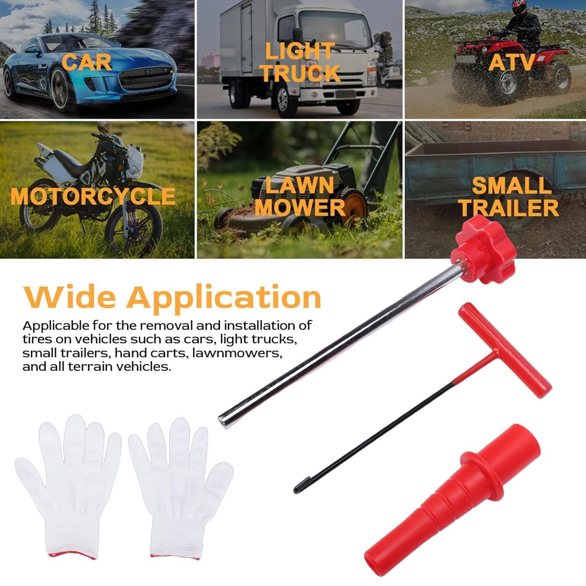 [Industry Leading Durability] Constructed with heavy-duty steel components and industrial-grade abs handles, this tool is built to withstand years of rigorous use. the ergonomic grip provides superior comfort and control during operation, while the robust construction ensures reliable performance in all conditions. this is the last valve stem tool you'll ever need to buy.. [Fast Replacement] Our quick tire valve stem tool kit enables you to replace a leaking valve stem in just 15 seconds without the need for tire disassembly. this innovative design saves you valuable time and eliminates the hassle of traditional methods while instantly improving your vehicle's tire performance. whether you're a professional mechanic or a diy enthusiast, this tool delivers professional-grade results in seconds.. [User Friendly Design] Designed for both experts and beginners, our kit comes with a comprehensive operation that makes valve stem replacement effortless. the intuitive design allows anyone to achieve perfect results without special skills or training. the clear instructions and simple steps ensure a smooth process from start to finish, making this the most accessible valve stem tool on the market.. [Universal Compatibility] Engineered to work with most tire rim sizes featuring 11.3mm (0.453 inch) diameter holes, this versatile tool is perfect for cars, light trucks, trailers, lawnmowers, and atvs. it supports all standard valve cores including tr413, tr414, and tr418 . wherever you need reliable valve stem replacement, this kit has you covered..Other fine products
