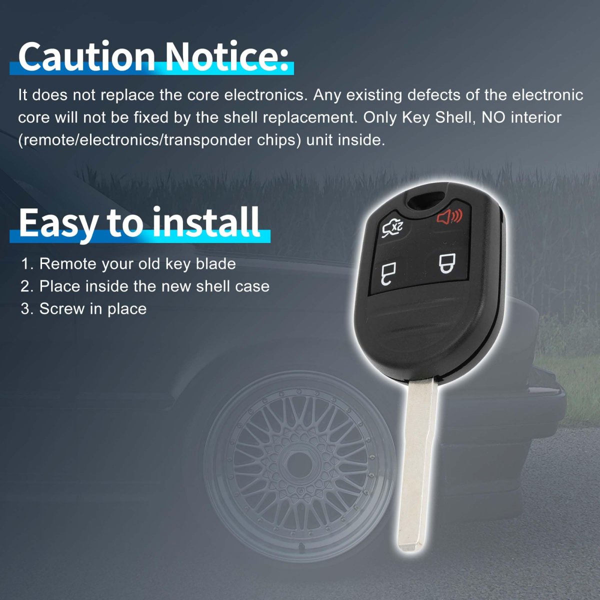 • Key Shell Caseless Entry Remote Key Fob Replacement For Ford Edge 2007-2015 4 Buttons Cwtwb1u793