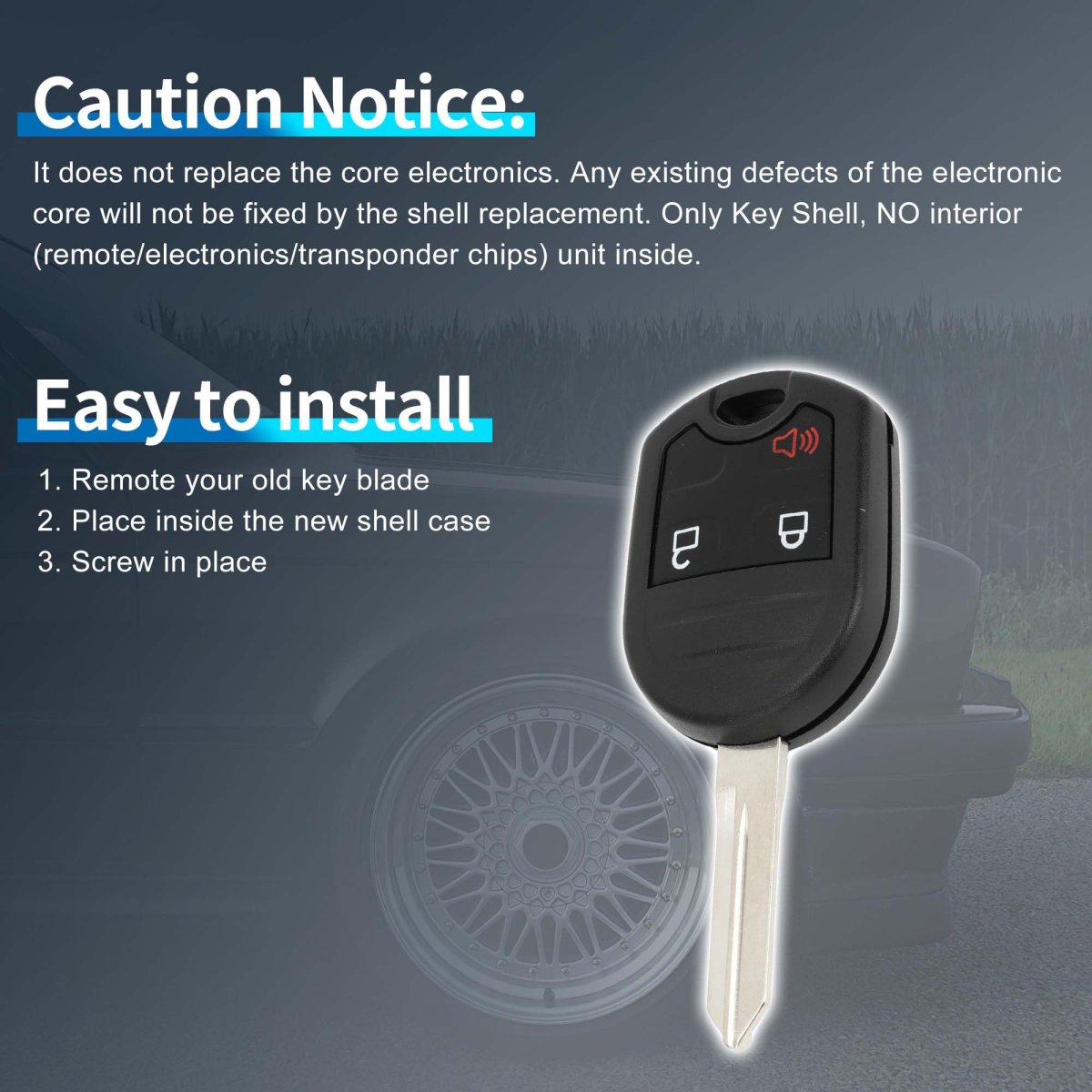 - Key Shell Caseless Entry Remote Key Fob Replacement Ford F-150 2004-2016 For Focus 2006-2012 3 Buttons Cwtwb1u793