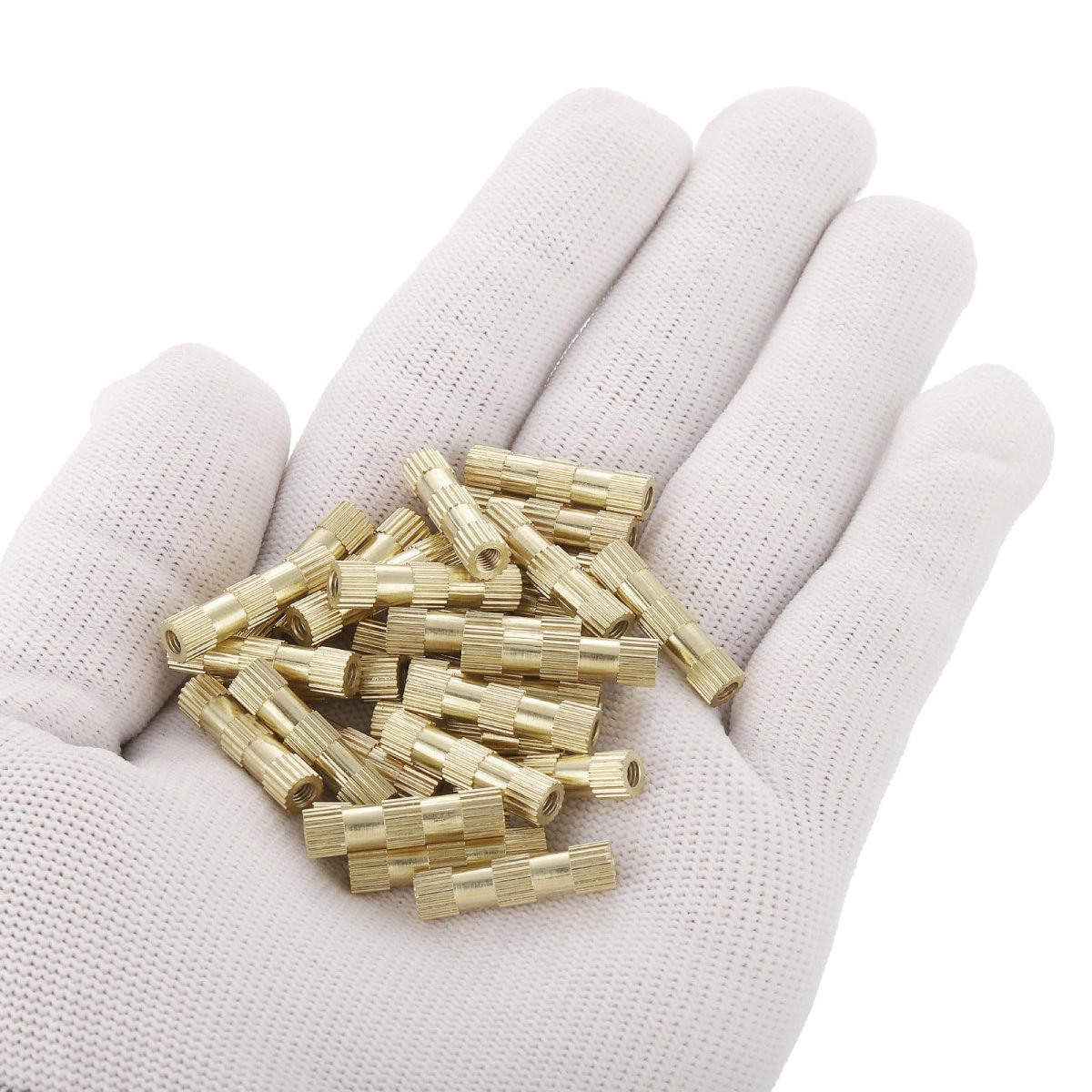 Thread Size: M3x0.5mm; Total Length: 20mm/0.79"; Outer Diameter+0.5/-0mm: 5mm/0.2"; Package Content: 30 x Knurl Thread Inserts Nuts. Material - Made of brass material, high hardness and durable. Provides good mechanical properties with increased corrosion and heat resistance. The high thermal conductivity of brass thread inserts means faster heating and insertion into plastic parts.. Feature - The embedding nut has a guide so there is no need for a counterbore or countersink. Smooth surface, firm, and uniform, easy to install.. Advantage - Due to the embossing process on the outer diameter of the insert, it forms certain friction and bites force with the brass insert after forming, which can be fixed on the inside so that it will not fall off easily. Has a certain torsion and tension.. Application - Can be installed by ultrasonic or heat into the plastic matrix, or formed during the injection, widely used in 3D printing injection molding, computer products, electronic products, circuit board fixing, etc., to achieve tight fixing..Other fine products