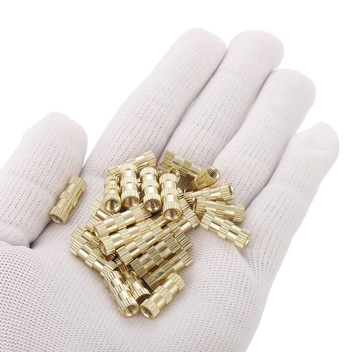Thread Size: M4x0.7mm; Total Length: 16mm/0.63"; Outer Diameter+0.5/-0mm: 6mm/0.24"; Package Content: 30 x Knurl Thread Inserts Nuts. Material - Made of brass material, high hardness and durable. Provides good mechanical properties with increased corrosion and heat resistance. The high thermal conductivity of brass thread inserts means faster heating and insertion into plastic parts.. Feature - The embedding nut has a guide so there is no need for a counterbore or countersink. Smooth surface, firm, and uniform, easy to install.. Advantage - Due to the embossing process on the outer diameter of the insert, it forms certain friction and bites force with the brass insert after forming, which can be fixed on the inside so that it will not fall off easily. Has a certain torsion and tension.. Application - Can be installed by ultrasonic or heat into the plastic matrix, or formed during the injection, widely used in 3D printing injection molding, computer products, electronic products, circuit board fixing, etc., to achieve tight fixing..Other fine products