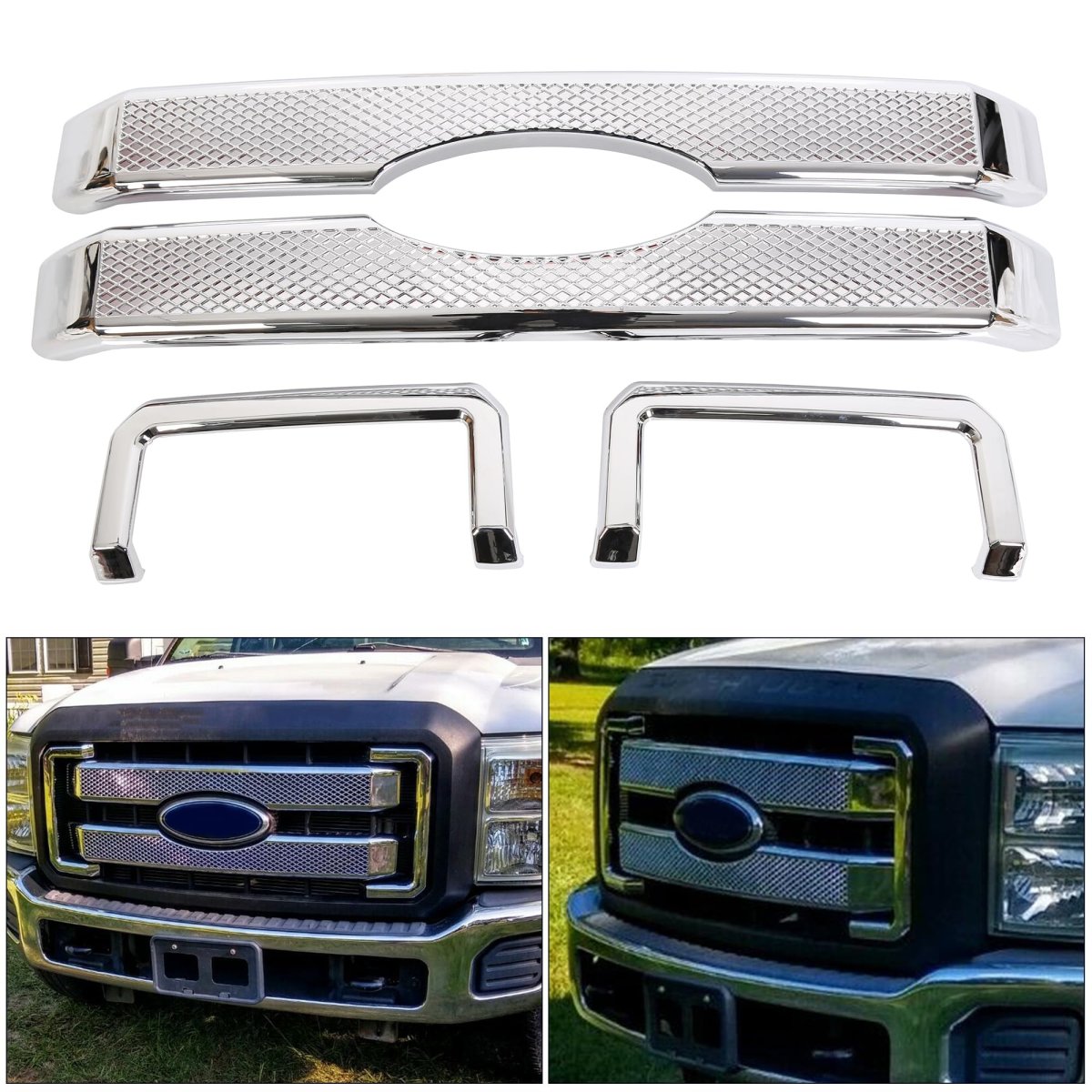 - Kuafu Grille Trim Compatible With 2011-2016 Ford F-250 F-350 F-450 F-550 Super Duty Front Mesh Grill Cover Chrome Plastic Abs