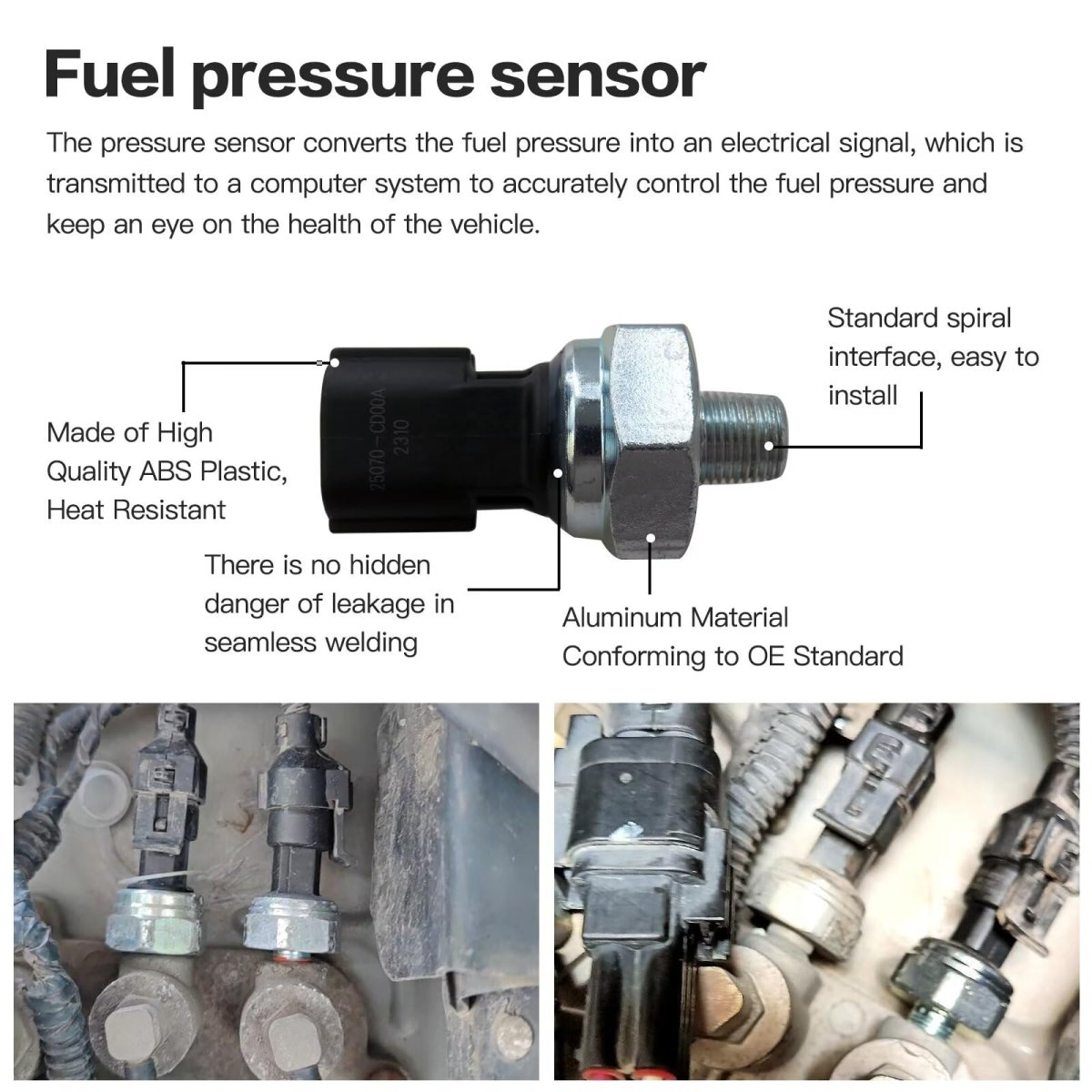 Fitment: Oil pressure sensor for 2004-2009 for In-finiti QX56, 2003-2009 for Ni-ssan 350Z, 2005 2006 for Ni-ssan Altima, 2005 2006 2007 2008 for Ni-ssan Armada, 2005 2006 2007 2008 2009 for Nis-san Frontier, 2009 2010 for Nis-san GT-R, 2004 2005 2006 2007 2008 2009 for Nis-san Pathfinder, 2009 for Nis-san Sentra, 2004 2005 2006 2007 2008 for Nis-san Titan, 2005 2006 2007 2008 2009 for Nis-san Xterra. Replaces Part Number: PS417, 201-2368, 1S6896, PS561, 25070-CD000, 25070-CD00A 25070 CD00A. Function: Oil Pressure Sensor shows whether the oil system has a safe level of pressure, so can keep the engine normally operate. Easy to install: Easy to install !!! Put the sensor on the connector and fix it. Professional installation is highly recommended.Other fine products