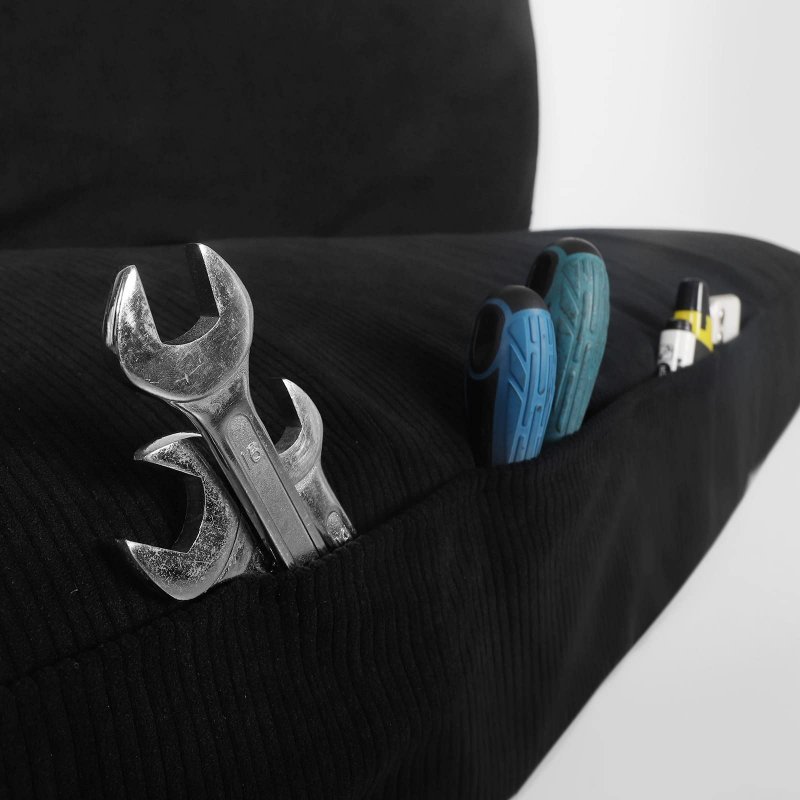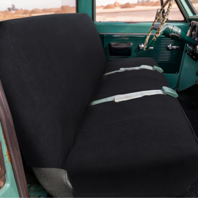 Made with a thick, heavy-duty, strong woven fabric. Built-in Openings for your seatbelts.. Convenient front pockets give you the storage you need for all your day-to-day use. Works for trucks with bench seat without headrest. Consisting of only one-piece,make installation easy.Other fine products