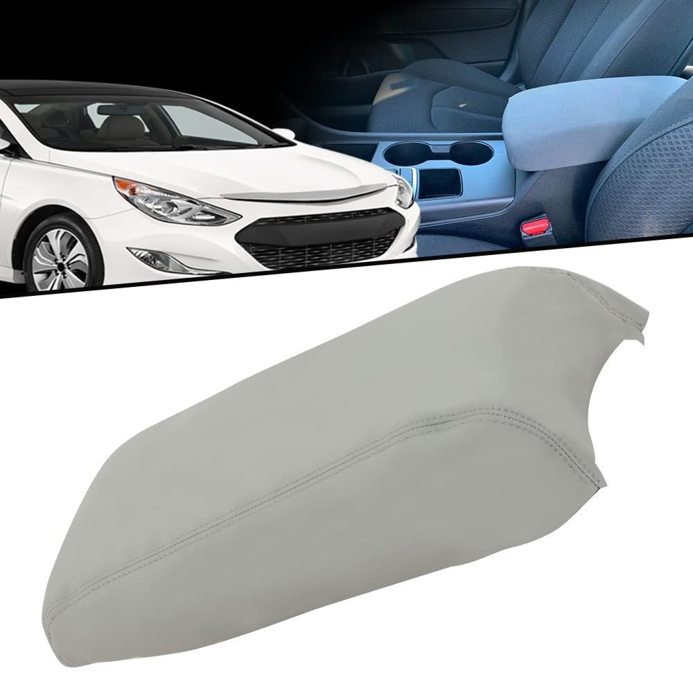 - Leather Center Console Lid Armrest Cover For Sonata 2015 2016 2017 2018 2019 Gray