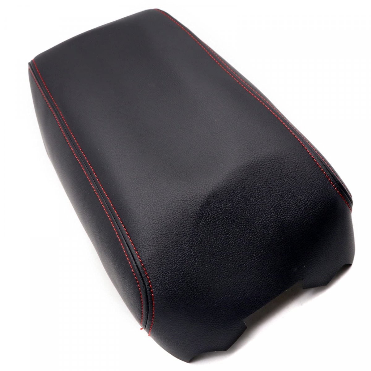 Leather Center Console Lid Cover Armrest For Dodge Charger 2011-2020 Black Red Stitch