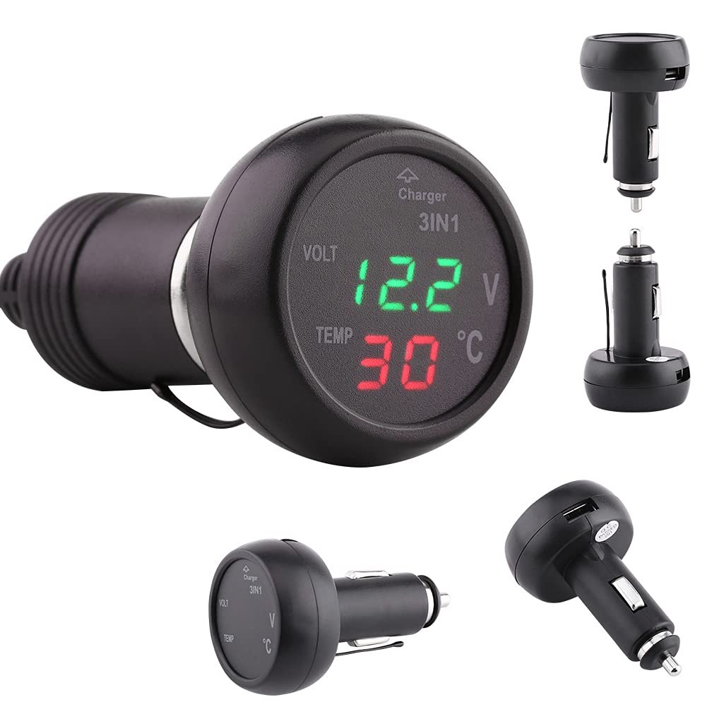 • Led Digital Display Voltmeter Thermometer 3in1 Usb Car Charger For Cars Suvs Trucks With Fast Charging Real Time Battery