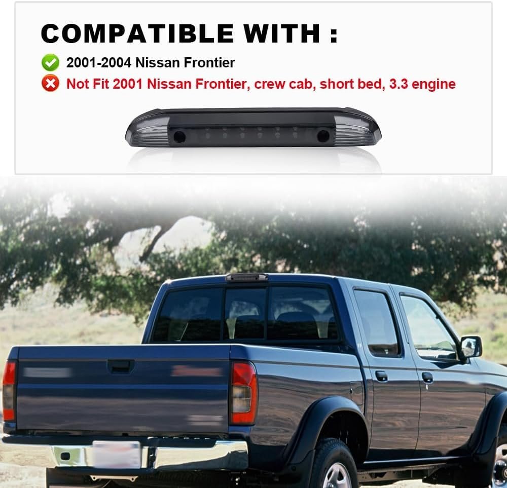 Vehicle Fitment: Compatible with 2001 2002 2003 2004 Nissan Frontier. OE Standard: Excellent durability.Complies with Original Equipment (OE) standards,ensuring replacement fit just like the original.. Easy To Install: Made to factory specifications for a hassle-free installation. Easy to put on and off, without the need for any tools. Durable Material: 3rd Third Brake Light is made of high-quality material, using advanced production technology. Durable and not easily damaged. Clear Visibility:The rear high-mounted brake light not only provides a cool look and excellent illumination, but also improves high recognition.Other fine products