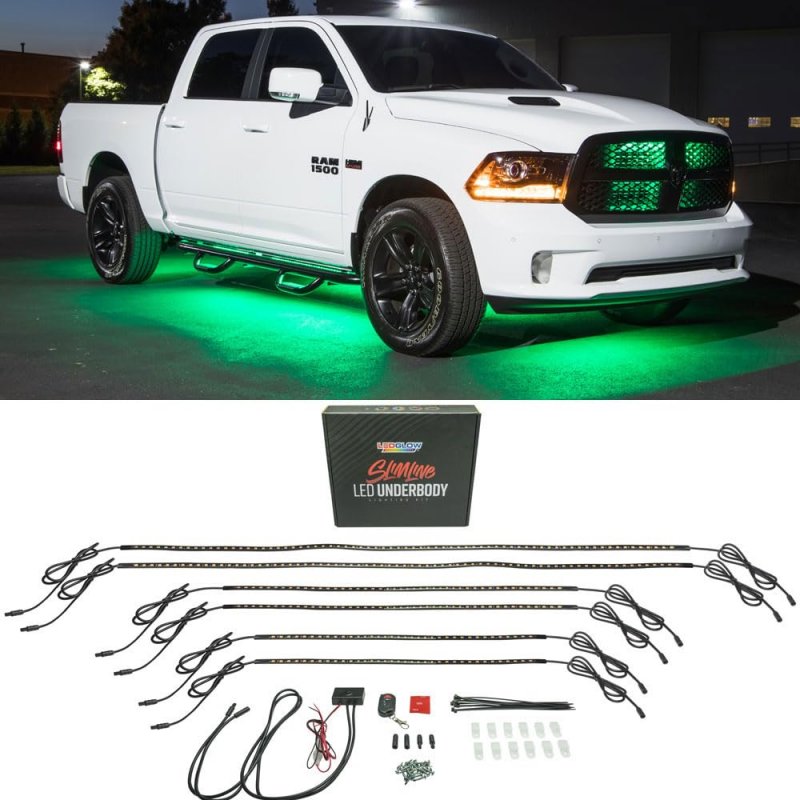 - Ledglow 6pc Green Flexible Truck Slimline Led Underbody Underglow Accent Neon Lighting Kit 4 Unique Patterns Water Resistant