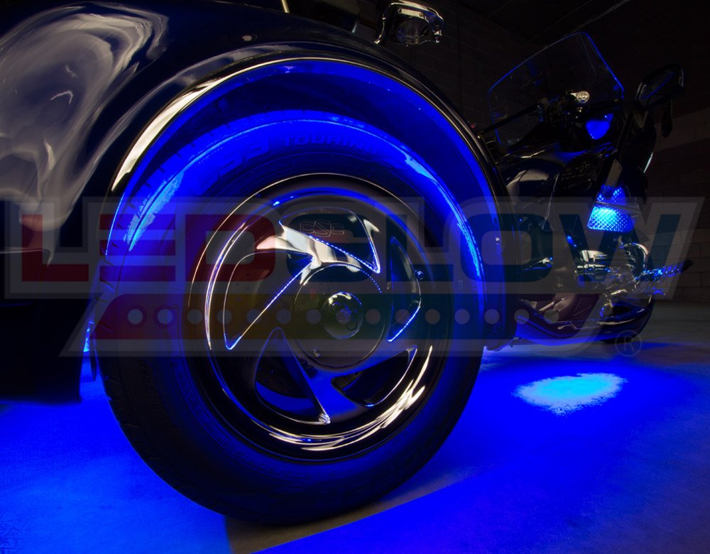 LEDGlow's 2pc LiteTrike Advanced Million Color Wheel Well Lighting Kit can be easily added to your trike with the featured side mounting LED strips. This wheel well lighting kit was designed specifically for trikes and comes included with 2 wheel well lighting strips that feature 54 SMDs per strip, totaling 108 SMDs per add on kit! Each Advanced Million Color Trike Wheel Well Strip is 36 inches in length with 4ft of power wire that connects directly into the included 2pc wire harness. Installing each wheel well lighting strip is a breeze with the included 3MTM Tape and illuminates your vehicle's wheel well and tire for a unique, custom style.Other fine products