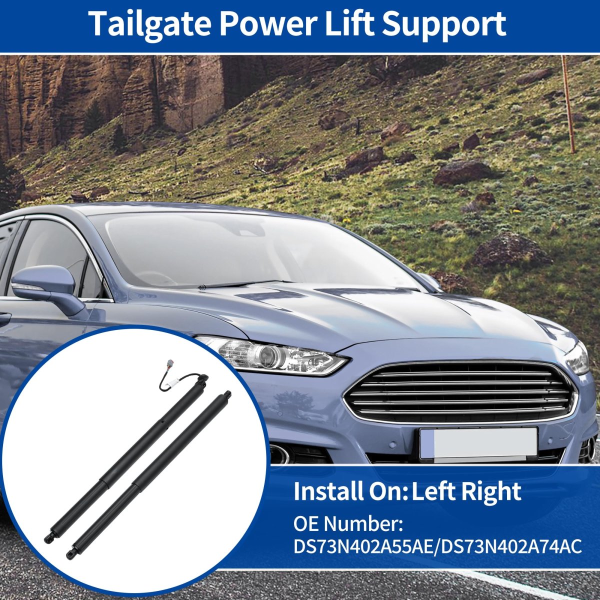 Part for: OE Number:DS73N402A55AE/DS73N402A74AC. This Left Right Liftgate Support Struts fit for FORD Mondeo 2015-2020. Function of Rear Liftgate Power Support Shock Strut: It shall be aging, cracking, rusty connector etc. after long-term use. Replace rear hatch struts kit when the trunk door have noisy sound or clunky that hard to open and close. Instead of manually operate, this electric tailgate lift relying an actuator and plug to achieve remote control by key fob.. Features of Rear Tailgate Struts: This Power Liftgate Support made with durable metal material with anti-rust coating for corrosion resistance, anti corrosion sleeve with metal mounting bracket to prevent rust or deform, pre-wired harness to prevent inside wires from rust or break. Built-in electric motor will driving and guide the electric strut to extend or contract.. How to Install: 1. Keep rear gate door open on max height and remove inner trim panel; 2. Unplug the plug, use tools to loose the old spherical joint and insert new one; 3. Plug the liftgate plug and recover the inner trim panel; 4. Use diagnostic scanner to clear error code, just use scanner to clear if show negative/occasional; replace the lift struts if show permanent. Confirm the L/R mark on struts before install it on your tailgate.. Pack List: 1 Pair Tailgate Power Lift Support. Use below method to active tailgate remote function: 1. Push the trunk close button; or 2. Close the tailgate by hand slowly and push the trunk open button; or 3. Use diagnostic scanner to reset control module and push trunk close button..Other fine products