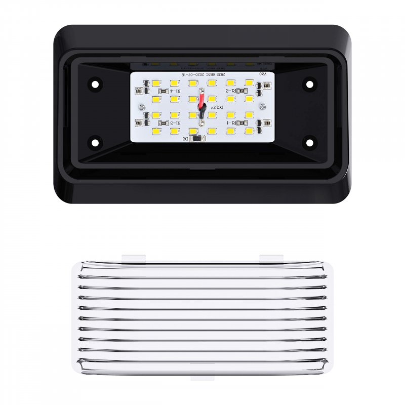 Leisure LED 280 Lumens Black Base LED Rectangle Porch Light Fixture - Wide Voltage Range : 11-18 volts. Made with Environment-friendly technology and materials - Applications include 12 Volts DC recreational vehicles.. RV fluctuations can damage a regular LED. This LED is designed to withstand a wide operating voltage range.. Beam pattern : 120 degrees - Color Temperature : 6000-6500K Cool White -. 24 High power 2835 LEDs - 2.7 Power Watts - 60,000 hour life expectancy. Last many times longer than standard light bulb.Other fine products
