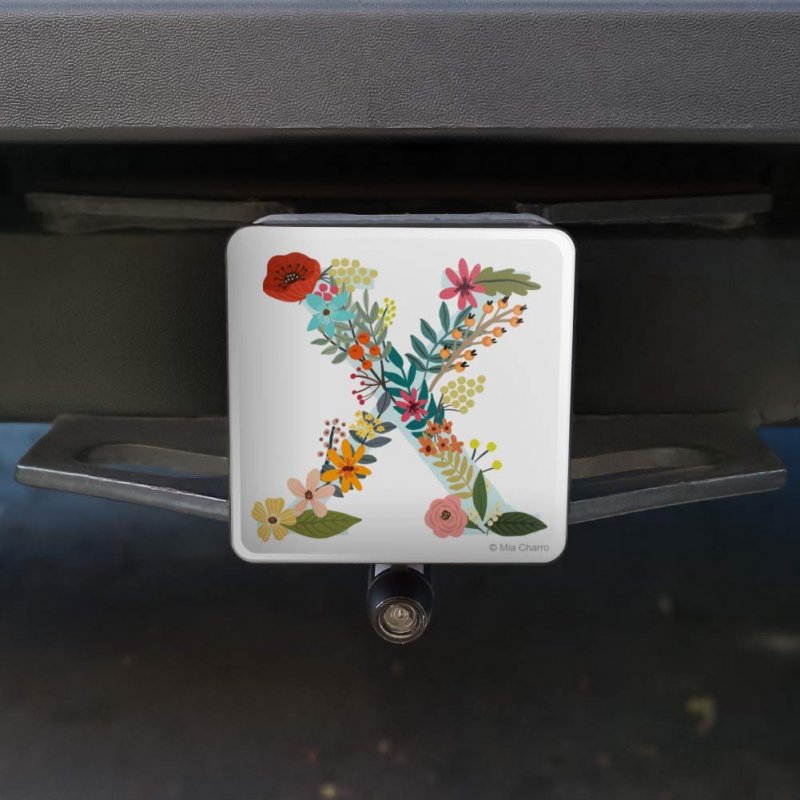 - Letter X Floral Monogram Initial Tow Trailer Hitch Cover Plug Insert