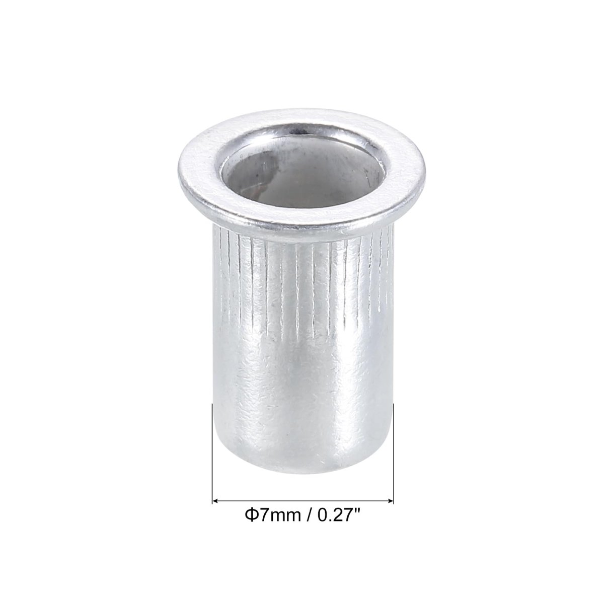Material: Aluminum Alloy; Thread Size: M8 x 1.25mm; Drill hole size: 11mm / 0.43"; Fastener Type: Hollow. Mechanical internal thread, materials, uniform wall thickness, surface treatment, corrosion resistance, and high strength.. Drill a hole according to the size of the rivet nut installation hole, insert the rivet nut, and tighten the locking nut with the rivet tool.. Widely used in automobile sheet metal, household thin iron cabinet, roof, equipment casing, etc.. Widely used in metal sheets or non-metal plastic, wood, and other sheets, rivet nuts can be firmly fixed on the sheet to provide tight thread locking force..Other fine products