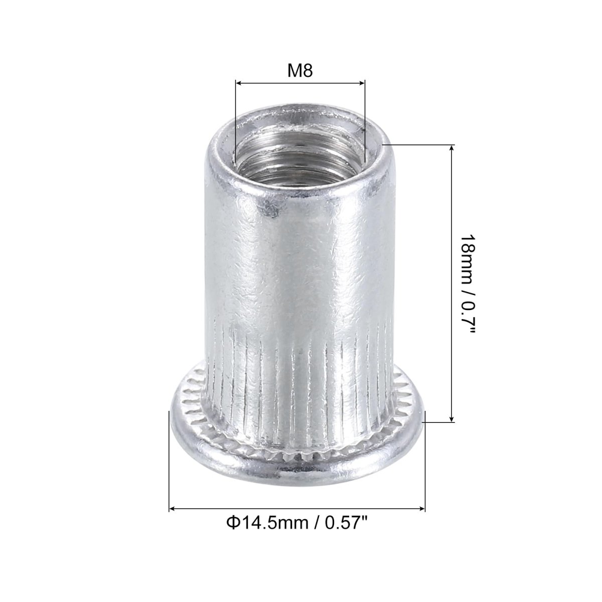 - M8 Rivet Nuts Aluminium Alloy Knurled Flat Head Threaded Insert 40pcs
