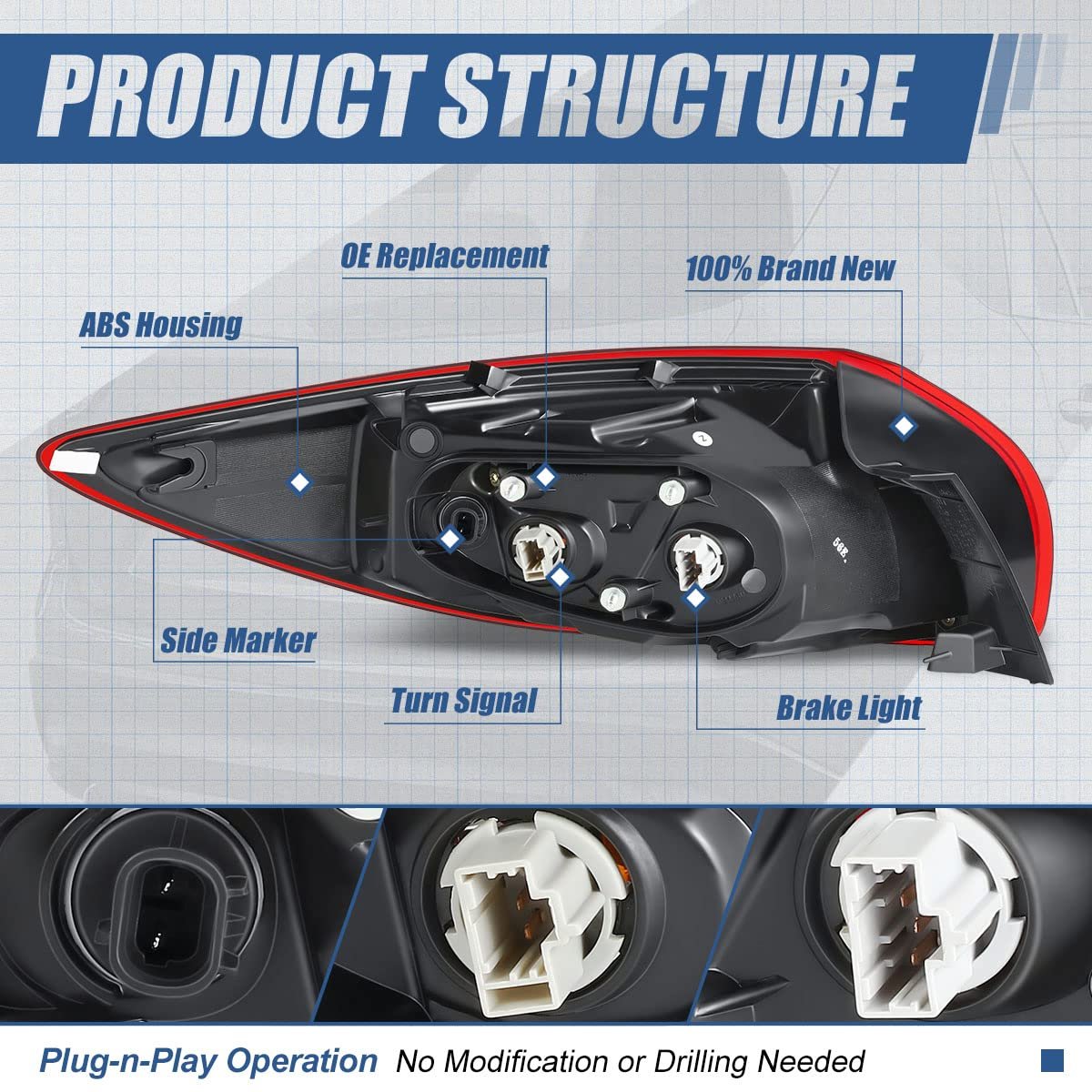 Vehicle Compatibility - Tail light assembly compatible with Mazda CX-5 2013-2016, fits with outer tail light models.. Improve Visibility and Appearance - Come with [1] passenger right side tail light with brake light and turn signal, can replace the old or damaged tail lamp for upgrade appearance of vehicle with a visually striking presence, and help to improve the brightness with side marker, allowing you see the road clearly at night or in extreme weather.. Easy and Quick to Install - Plug-n-Play Operation, direct bolt-on OE fitment and replacement for original part, fast and easy to install without any drilling or modification.. Product Specifics - Bulb Type: Halogen Beam Type: Reflector Signal Light: 7440NA (Included) Tail Light: 7443 (Included) Side Marker: 194 (Included) Housing Color: Chrome Lens Color: Red, Clear Weight: 3 LBS OEM Part Number: KD3351150C KD3351150D Parkslink Number: MA2805111.Other fine products