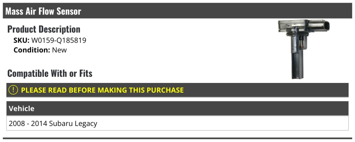 - Maf Mass Air Flow Sensor For 2008-2014 Subaru Legacy