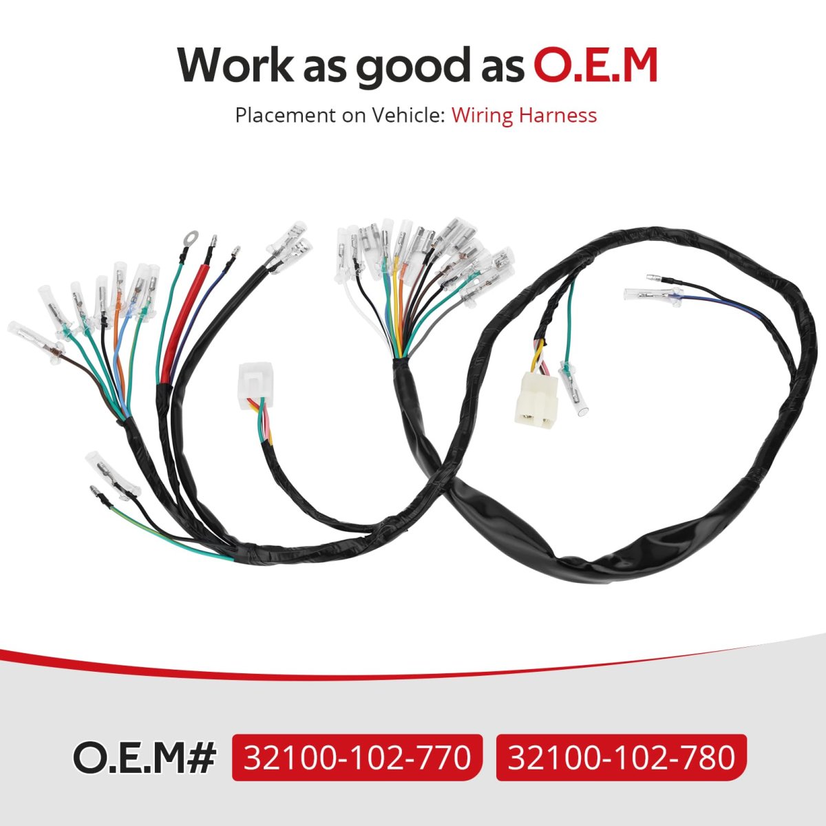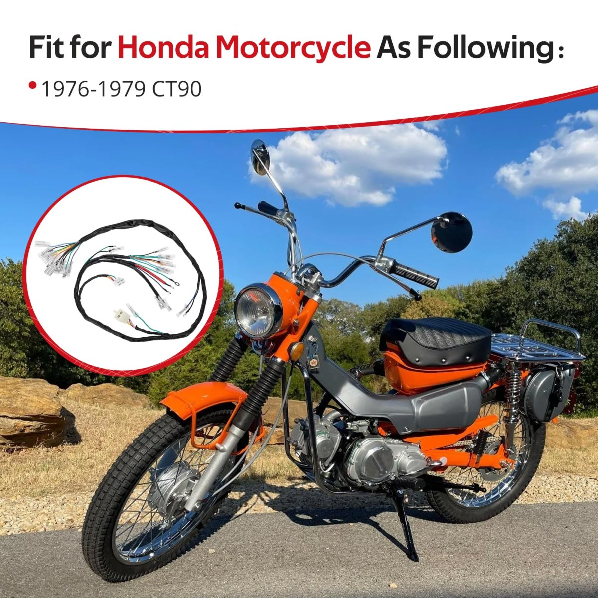 Fitment: Fit For Honda Motorcycle As Following: 1976-1979 CT90. Feature: Using 18AWG-20AWG T2 Red copper wire as material, this wiring harness is wear-resistant and high temperature resistance. Exact plug fit your motorcycle without modification. O.E.M# 32100-102-770 32100-102-780. Package: Main Wiring Harness x1.Other fine products