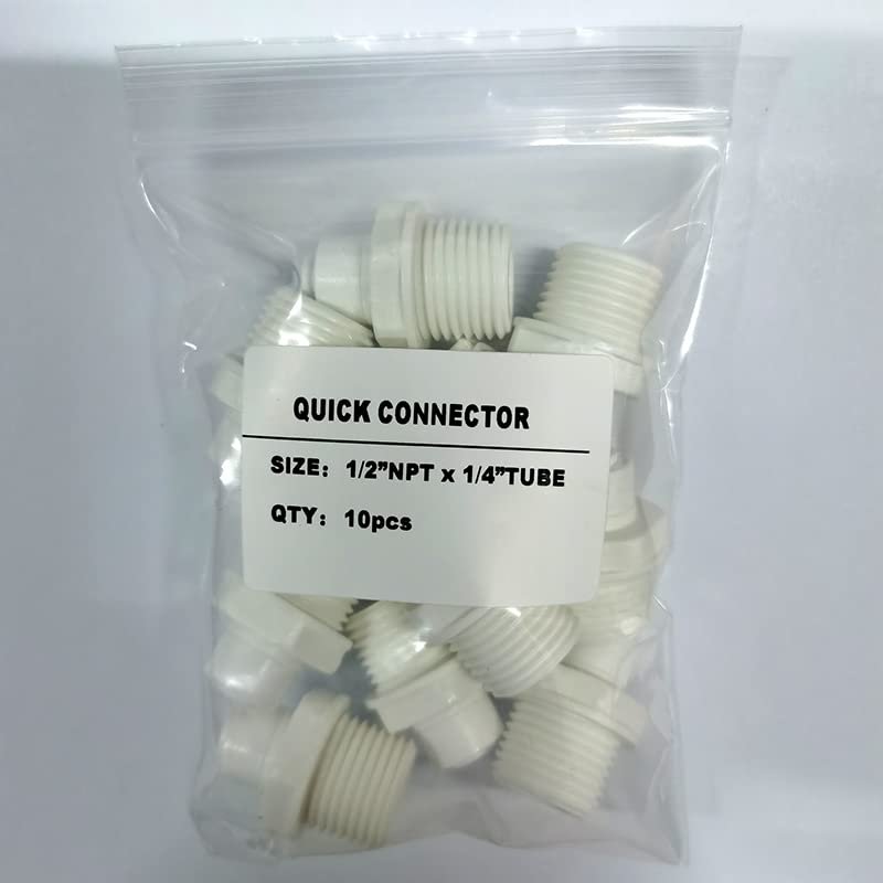 Product Name: Straight 1/2Npt to 1/4" Tube OD Push-in Connect Fittings,1/2" Male Thread Connector Adapter.. Easy Installation: New generation Non-Locking Clip technology offers an easy Diy Installation Without Tools Required, Just Push In to Connect.. Package Included: 1/2"Npt to 1/4" Tube OD Push To Connect Fitting,10 pcs.. Applications Include RO System Beverage Dispensing Refrigerator Ice Maker Coffee Machine etc.. Size&Tube Compatible With:1/4 inch Quick Connect fitting Size,Fits standard 1/4 od Tubing Used On Most Water Purification Systems..Other fine products