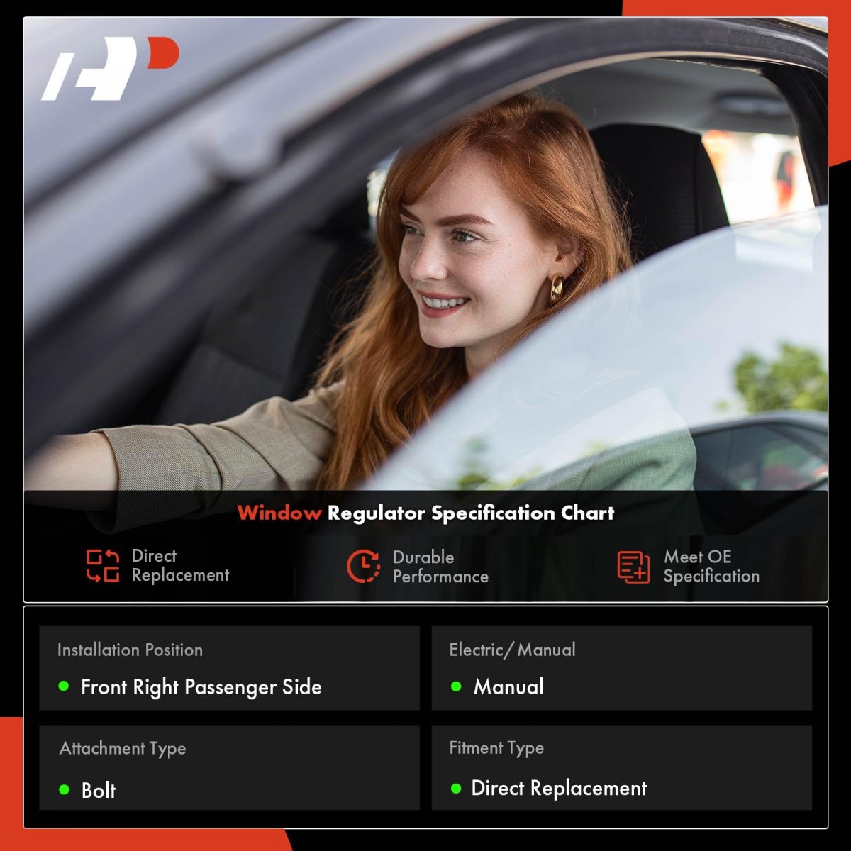 [Directly Fit]: OE Replacement Manual Window Regulator, Directly Fit. [Vehicle Fitment]: Compatible with Ford Bronco II 1989-1990 Sport Utility, Ranger 1989-1992 Extended Cab Pickup, Ranger 1989-1992 Standard Cab Pickup---Front Right Passenger Side; Manual Transmission. [Location]: Front Right Passenger Side. [Reference Number]: The A-Premium Manual Window Regulator's reference number: 740-525, E9TZ1023200B, FO1351110, FO1351111, 740525, E9TZ10-23200B. Before placing an order, verify that the part is compatible with your vehicle using the compatibility system..Other fine products