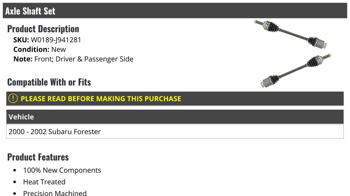 - Marketplace Auto Parts Front Axle Shaft Set Of 2 Compatible With 2000-2002 Subaru Forester
