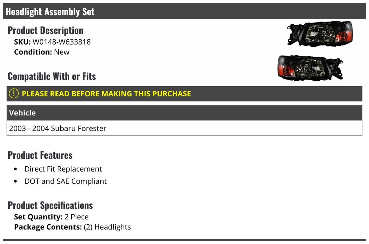 - Marketplace Auto Parts Headlight Assembly Set Of 2 Compatible With 2003-2004 Subaru Forester