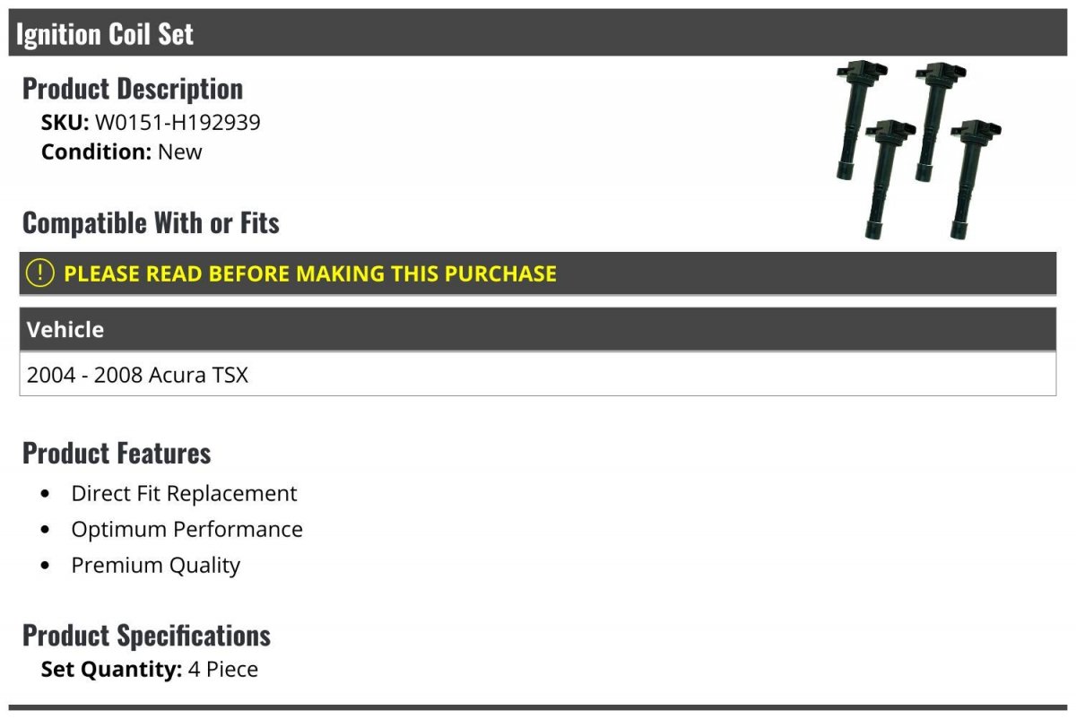 - Marketplace Auto Parts Ignition Coil Set Of 4 Compatible With 2004-2008 Acura Tsx