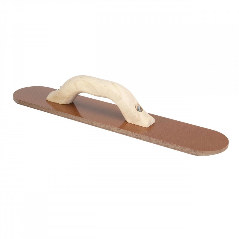 Constructed with a " thick laminated canvas resin for a smooth finish and efficient evaporation of bleed water. Ideal for working color hardeners into concrete. Available in lengths ranging from 12" to 20" with a choice of round or square end. Choose between a DuraSoft or wood handle, with options for handle shape. Proudly made in the USA with global materials for high-quality craftsmanship.Other fine products