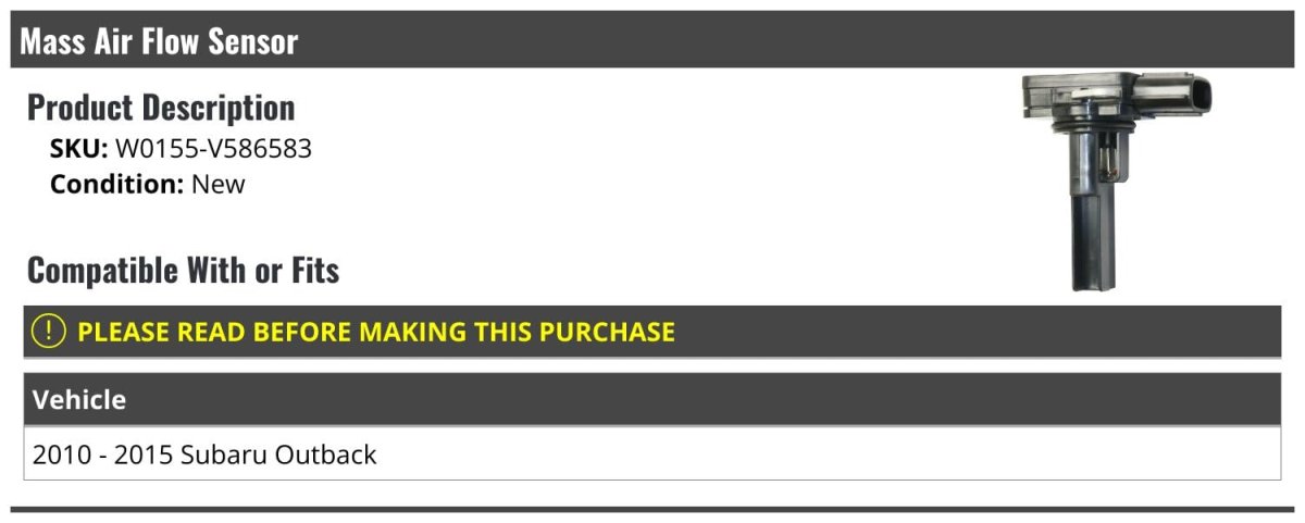 - Mass Air Flow Sensor For 2010-2015 Subaru Outback
