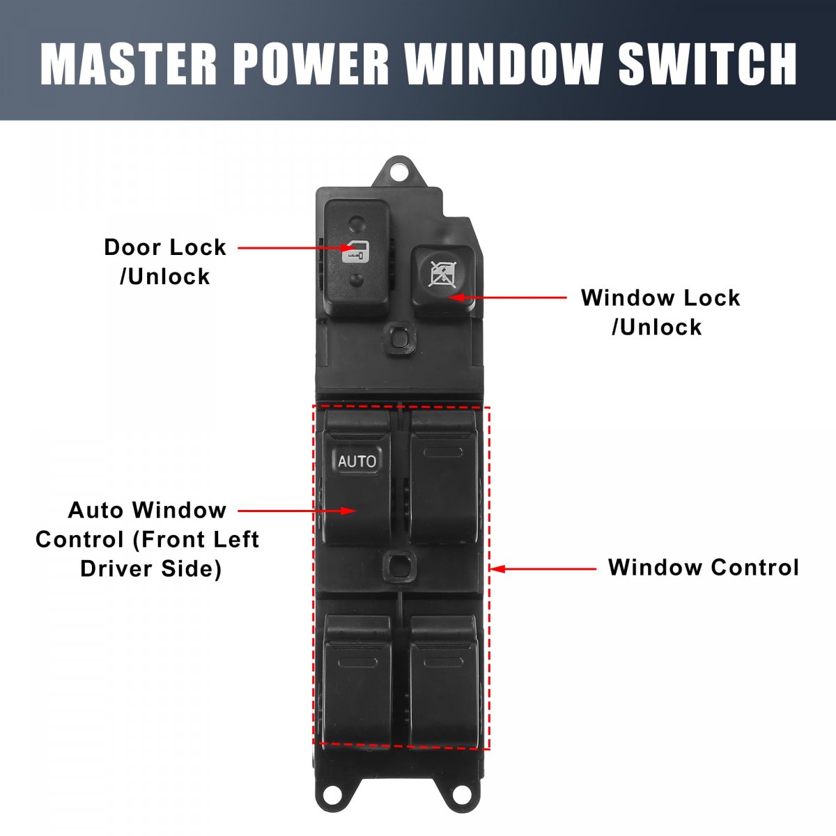 Fitment: for Toyota 4Runner 1993-1995, for Toyota Hilux 1993-2004, for Toyota Land Cruiser 1995-1998, for Lexus LX450 1995-1998. OE Number: 84820-35010. Button Function: Door Lock/Unlock,Window Lock/Unlock, Auto Window Control (Front Left Driver Side), Window Control. Placement on Vehicle: Front Left Driver Side. Note: Make sure the OE number, model, year, appearance, and function are consistent with the one before buying; This is a non-OEM product, accessory only. The car must be in the status of flameout when installation..Other fine products