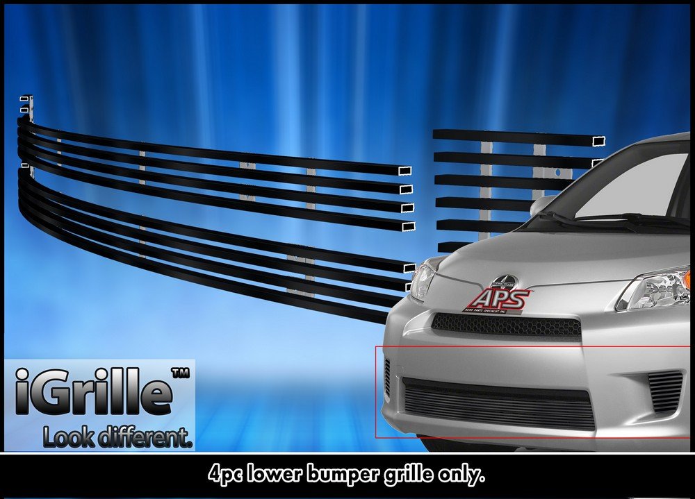 Fitments *2007-2013 Scion XD Introduction Looking for an easy way to customize your vehicle's look? A stainless steel eGrille is the answer! This custom grille insert is easy to install and will upgrade your car or truck's appearance within minutes. Made from grade 304 stainless steel, the eGrille stays shiny and rust free 2. 4 times longer than aluminum in continuous, aggressive salt spray tests. The eGrille is the only grill that is polished on all 4 sides, giving your vehicle an unprecedented 3 dimensional shine. Attention to detail is another winning factor - meaning the eGrille is beautifully finished front and back. Heavy duty rivet bolts exert uniform clamping along the back of the eGrille, ensuring that not a whistle will be heard as you speed along the highway. A dreadful whistling noise is reportedly common in other brands of grilles. This is caused by poor welding techniques and the wind passing through the crevices. Thank you for choosing the eGrille - the mark of superior craftsmanship and a one of a kind look. Specification *Position: Lower Bumper *Material: 304 Stainless Steel *Finish: Black Powder Coated Installation 4 pcs Bolt Over/Overlay/Bolton (Drilling Required) Item offered Billet Grille Insert All Necessary Mounting Hardwares Installation Instruction Note Grille insert only, logo or emblem, frame or shell is NOT included. Premium texturized black powder coating on the stainless steel eGrille - guaranteed NOT to chip, flake or strip off like other black grilles of lesser quality. Choose the eGrille for lasting paint color and a bold look. Fine craftsmanship with attention to detail - heavy duty rivet bolts on the back of the eGrille apply a uniform clamp force that prevents the whistling effect (caused by poor welding and vibration) reportedly common in other brands of black billet grillesStainless steel affords far better protection against oxidation and corrosion than aluminum. The eGrille is the only grille powder coated black on all 4 sides - giving your grille 360 degrees of coverage whereas others are only painted black on 1 surface. The eGrille has DIY instructions and includes hardware for easy installation. No special tools required. This is a custom grill. Bars are 50% wider and have smaller gaps in between, making the eGrille denser and heavier. The eGrille blocks flying rocks, debris - better defending your radiatior and intercooler. Choose the eGrille for a quality grille that goes the extra mile. Model # BGC-6T3447W.Other fine products