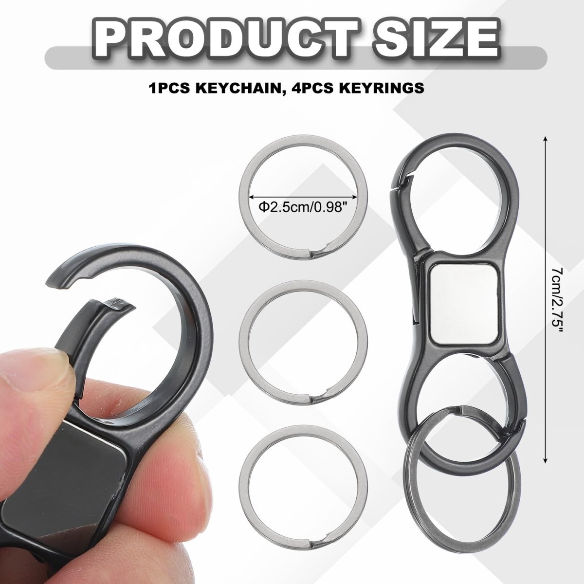 PACKAGE CONTENT: This keychain comes with 1pcs key chain and 4pcs durable round key rings, making assembly effortless. Perfect for hanging various items, its an essential keychain accessory for home, travel, and everyday use.. ZINC ALLOY MATERIAL: Crafted from zinc alloy, this car key chain combines strength with a sleek design. The built-in quick-release keychain clip allows effortless attachment/detachment of keys or belt loops, ensuring long-lasting durability.. DUAL-LOCK DETACHABLE DESIGN: Featuring an advanced dual-lock system, this key organizer lets you split keys using the included keychain rings. Perfect for separating car keys, house keys, or office keyskeeping them organized yet easily accessible.. USER-FRIENDLY FEATURES: The lightweight design and secure locks make this keychain a choice for travel, work, or outdoor activities. A must-have among practical keychain accessories!. MULTI-PURPOSE & EVERYDAY ESSENTIAL: Designed for daily convenience, this sturdy keychain replaces flimsy keychains prone to breakage. The compact size (7cm x 2.5cm, 40g) fits comfortably in pockets or bags..Other fine products