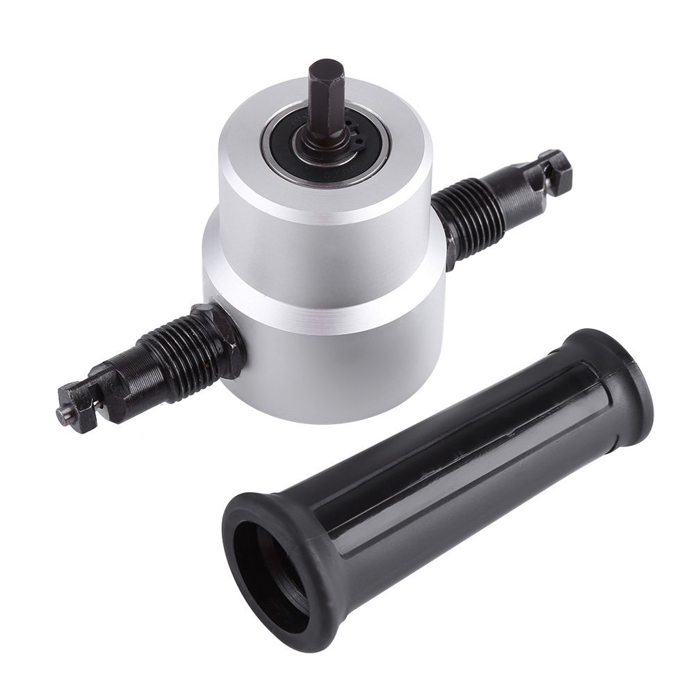 - Metal Sheet Cutter Kit Double Head Drill Attachment For Steel Copper Aluminum 360a Adjustable Nibbler Cutting Tool With 1 8mm