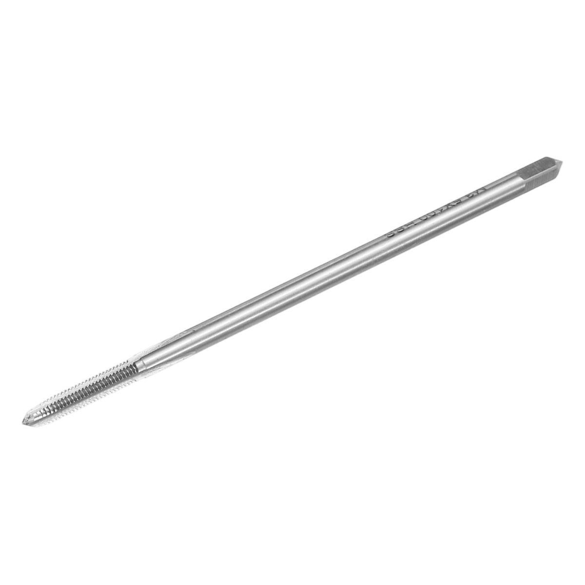 Metric Thread Tap: Thread size: M3.5 x 0.6 (right hand); accuracy: H2; total length: 100mm / 4 (extra long); square shank width: 3mm / 0.12; thread length: 19mm / 0.75; number of chip flutes: 3 flutes. Micro taps are mainly used in clocks and watches for machining holes in wood and soft metals with low hardness.. Straight Flute Tap: Straight flute design, clear threads without burrs, right hand tapping direction. Provides rapid downward chip removal to achieve efficient thread cutting, suitable for processing through holes or shallow holes.. Wide Applications: Thread taps create new threads or re-thread damaged or jammed threads. Widely used for most metals, iron plate, copper, zinc, alloy steel, abrasive steel, A3 steel, stainless steel. Add proper tapping oil for higher quality threads and more durable taps.. 6542 High Speed Steel Tap: Offer high hardness, good toughness, wear resistance, and excellent cutting performance. Uncoated taps feature just the base substrate without any additional coatings, great for a wide range of applications.. Tips: Machine taps are used with tapping, drilling, automatic or milling machines. Drill the holes with a twist drill bit first, then tap with a thread tap. The tapping angle should be 90 degrees vertical and stable. NOT recommended for hand and electric drill tapping..