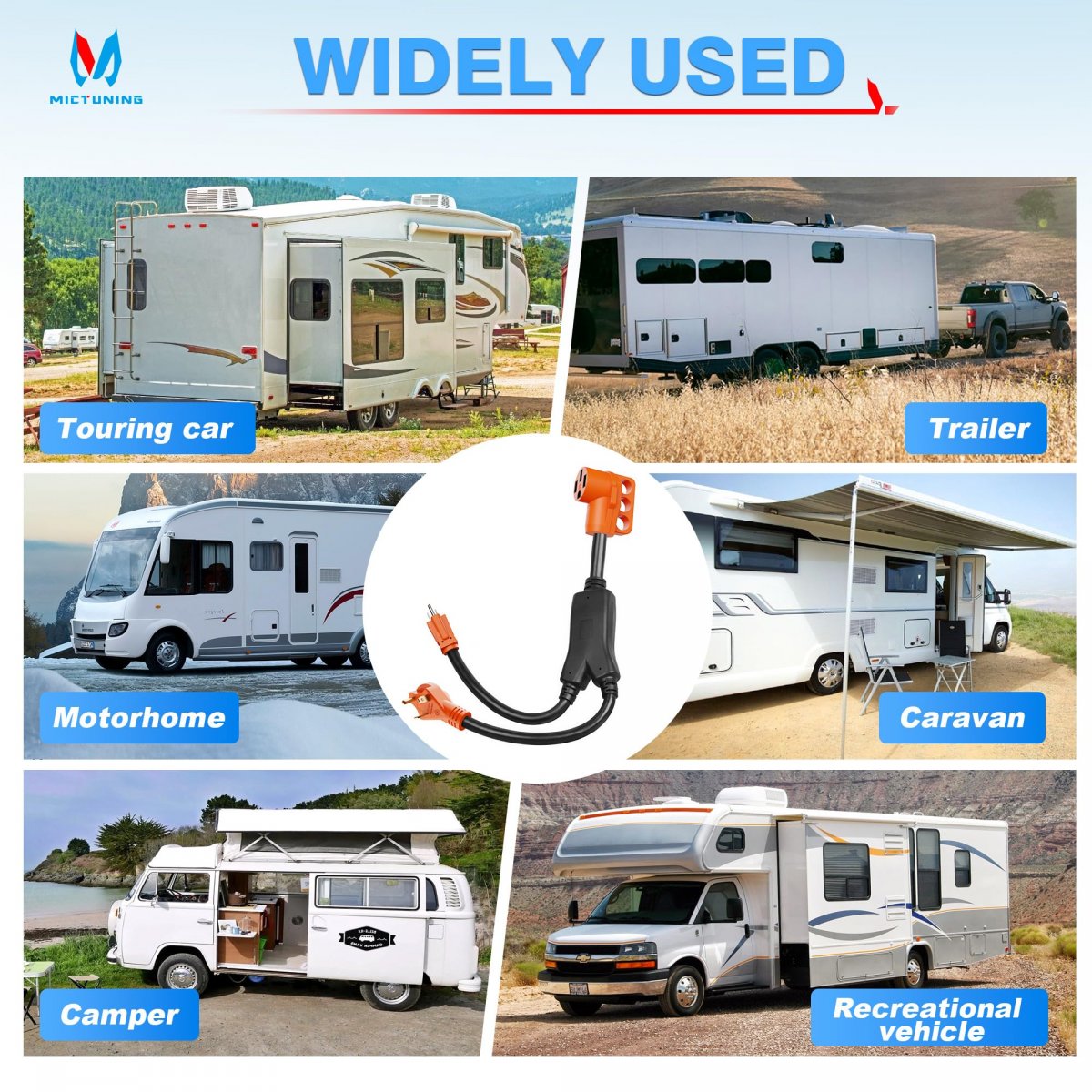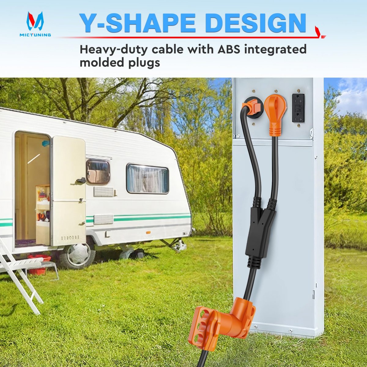Adds in Convenience - The "Y" style is to provide more amperage to a 50amp RV when no 50 amp plug is available. It draws the combined from a 15 and 30 AMP outlet that allows your RV to receive up to 45amp. Fairly Solid RV Plug - Adopts well-conductive copper pin and flame retardant ABS plastic housing, with strain relief clip to fix the cord, more stable and safer wire connection!. Technical Suggestion - Used in conjunction with properly sized circuit breakers. (Note: Do not work for GFI type outlets). Adapters Configuration - 125V/1875W 5-15P and 125V/3750W TT-30P to 125V/5625W 14-50R. Universal Fits - Suitable for almost all brands of RVs, Trailers, Motorhomes, Caravans, Campervans, Recreational Vehicles, etc.Other fine products