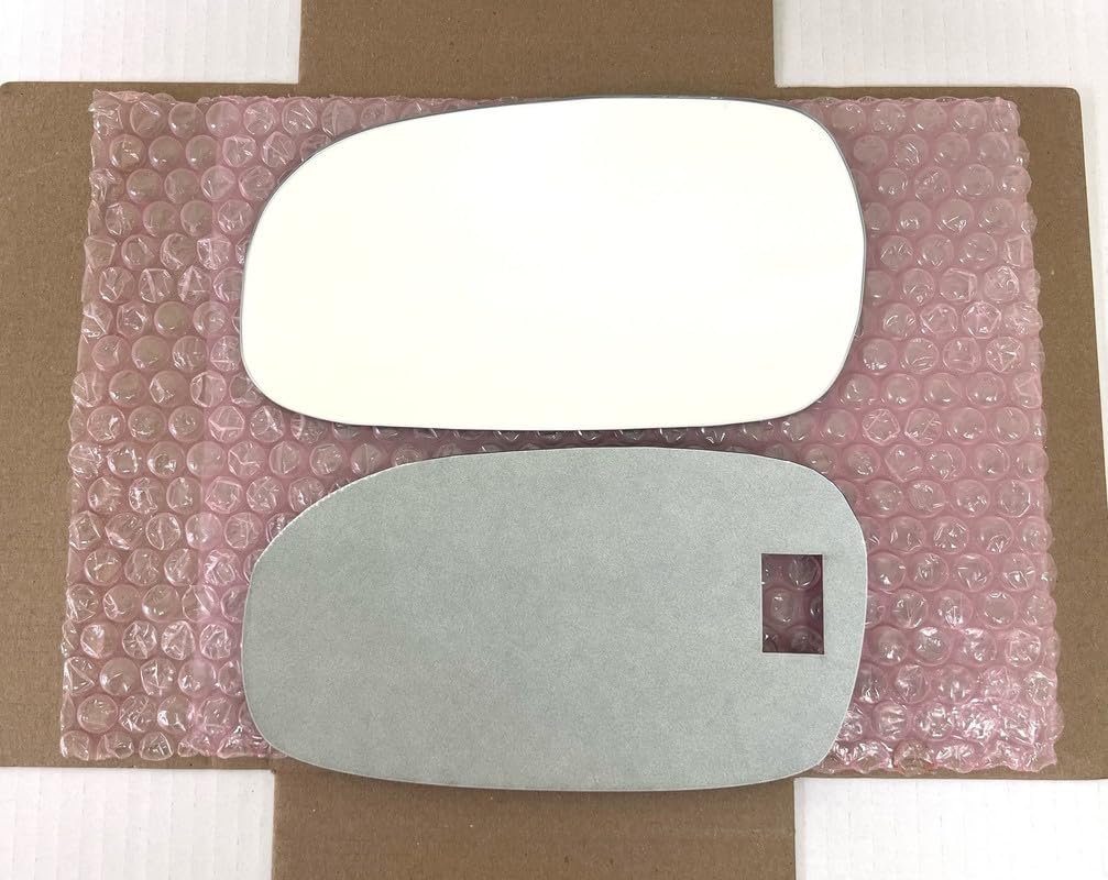 Automotive Grade replacement mirror glass. Actual picture shows mirror glass on top and adhesive at the bottom. No plastic backing plate attached or included.. Diagonal Measure (Longest): 7 inch = 17.8 cm. Longest diagonal dimension provided is the longest size of the glass in any direction, normally longest top to opposite bottom corners measurement.. Includes double-sided Automotive Grade adhesive contoured to mirror shape that provides optimum heat transfer and easy installation. This feature is in contrast with small inefficient adhesive patches that fail shortly after installation, and leave air gap between bonding layer.. Aluminum back coated real mirror glass for automotive application. This feature is in contrast with glasses with chrome paint spray film on top that look like mirror but top chrome spray fades or scratches over short time..
